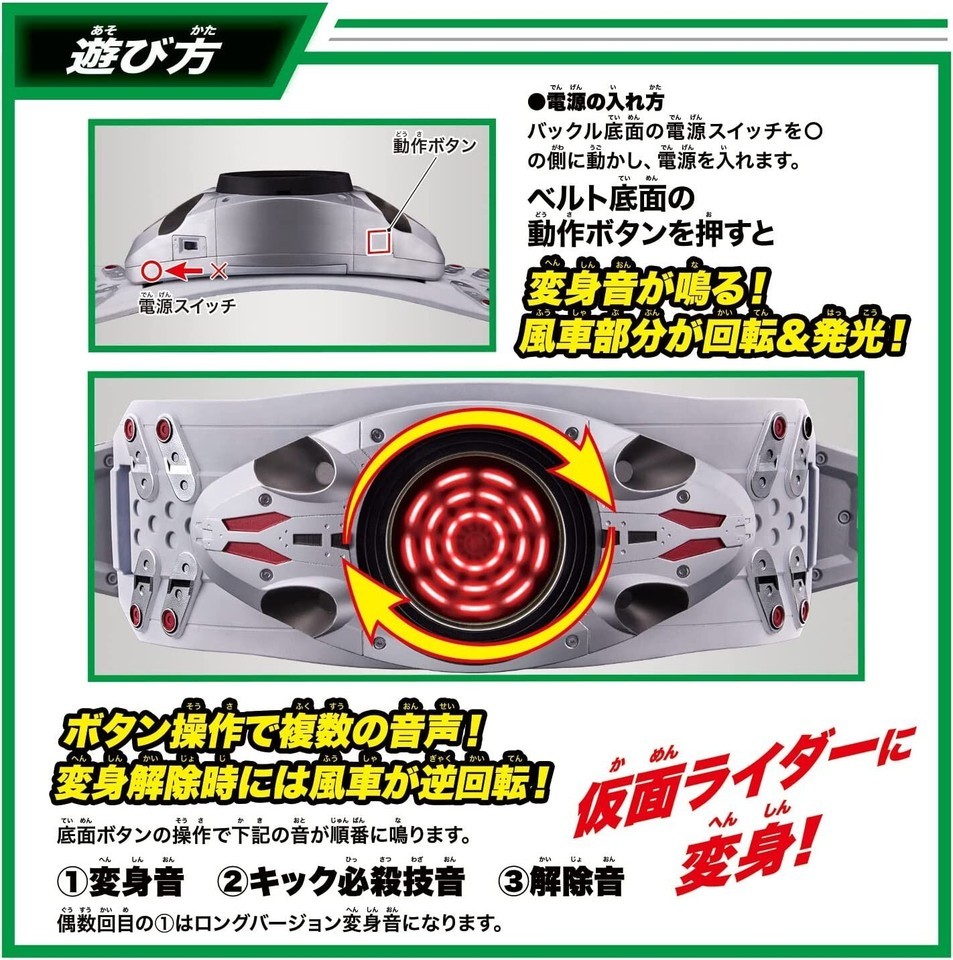¡De "Shin Kamen Rider" viene el "DX Kamen Rider Transformation Belt Typhoon with Prana Forced Ejection Aid Mechanism Initial Typ"! ¡Cuando presionas el boton de la correa, el motor gira el molino de viento! Se escucha un sonido de transformacion y se ilumina LED. Ademas del sonido de transformacion, tambien puedes disfrutar del sonido de movimiento especial de patada y liberar sonido con solo tocar un boton.