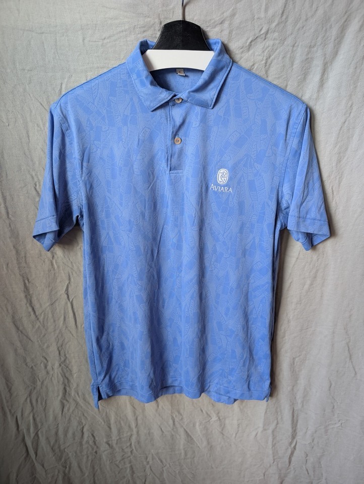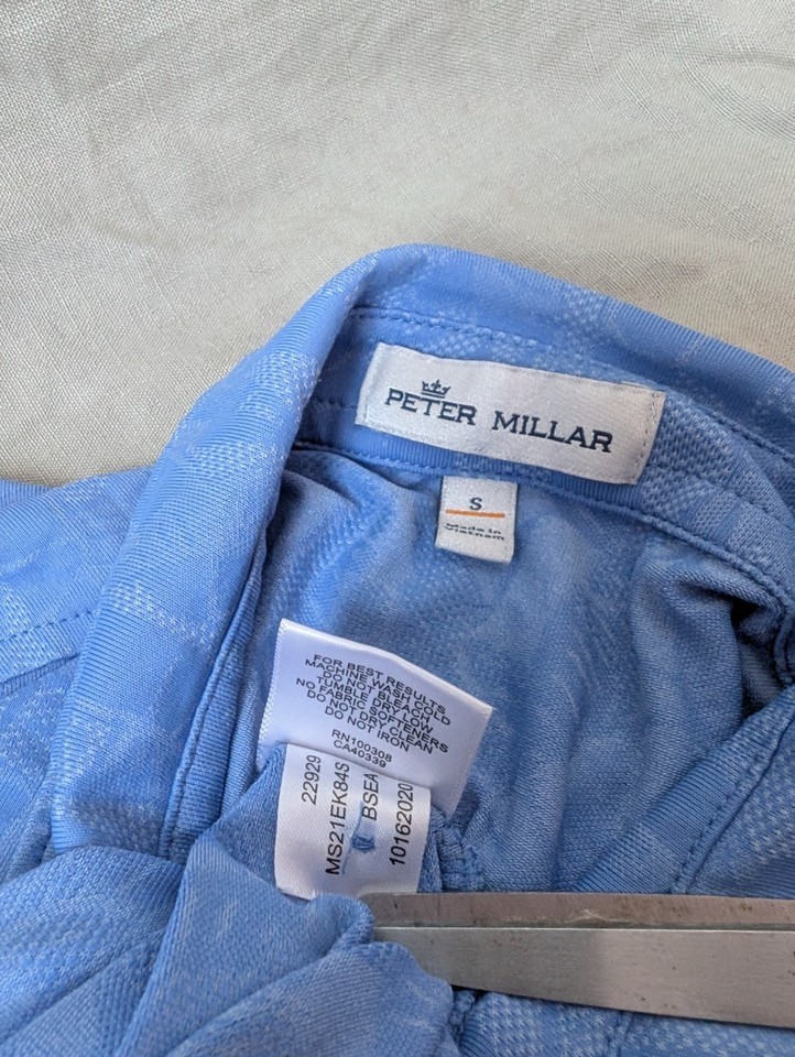 PETER MILLAR Crown Sport Stretch Golf Polo Palm Leaves BLUE Men Small Aviara