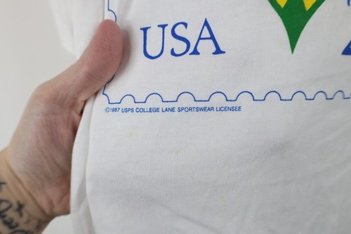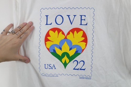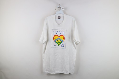 Vintage 80s Streetwear Womens XL USPS Postage Stamp Heart Love T-Shirt White USA