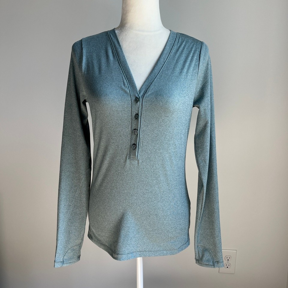 Athleta Uptempo Ribbed Henley Top. Thumb holes at cuffs.