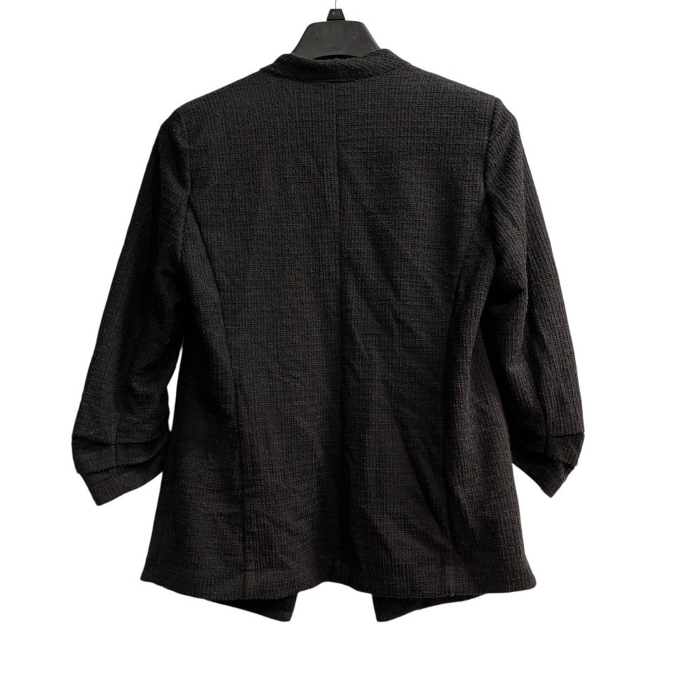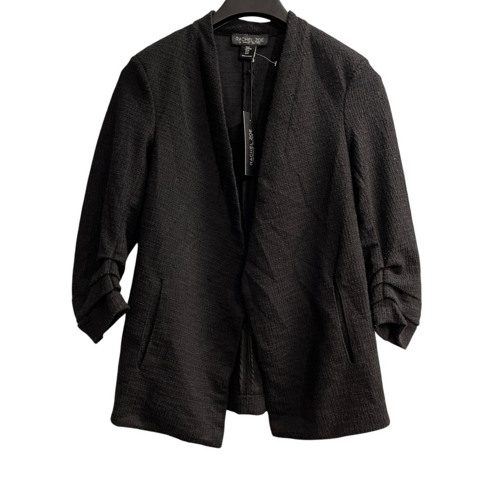 Rachel Zoe Blazer Womens M Black Textured Knit Jacket Ruched Sleeves Open Front