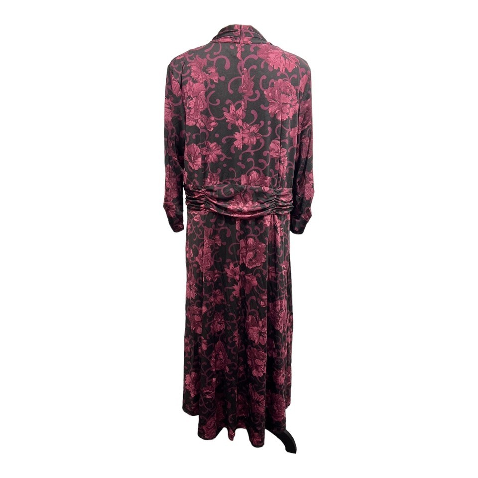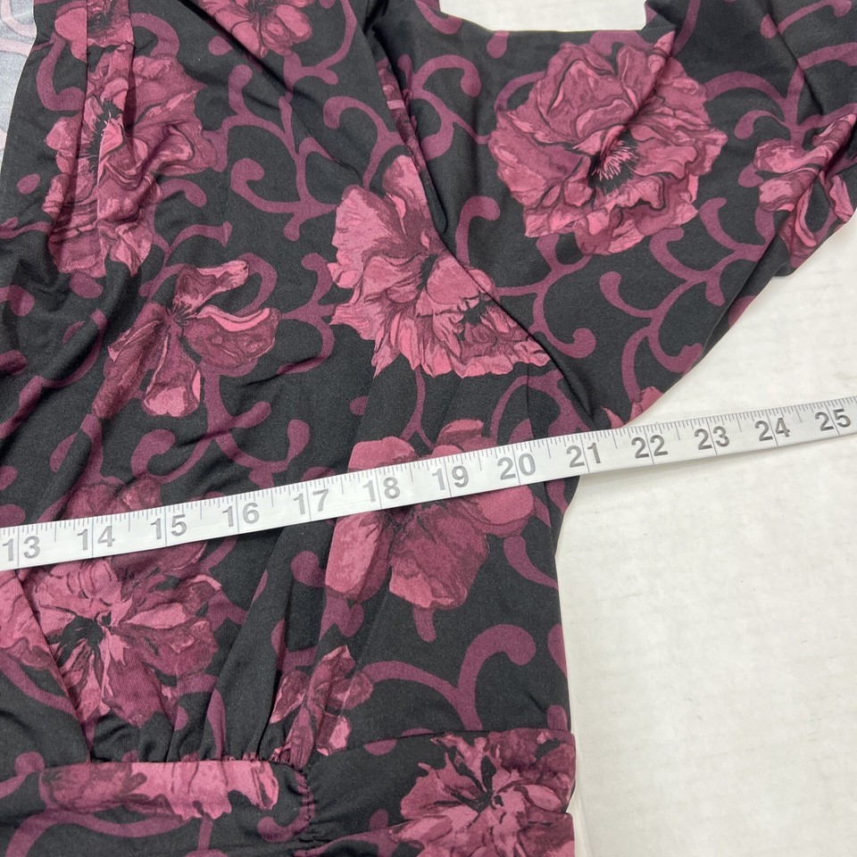 Perceptions Dress Womens 1X Purple Dark Floral Faux Wrap Jersey Knit Midi Career