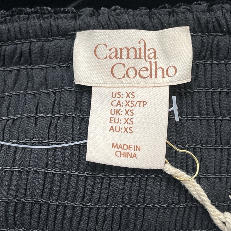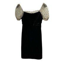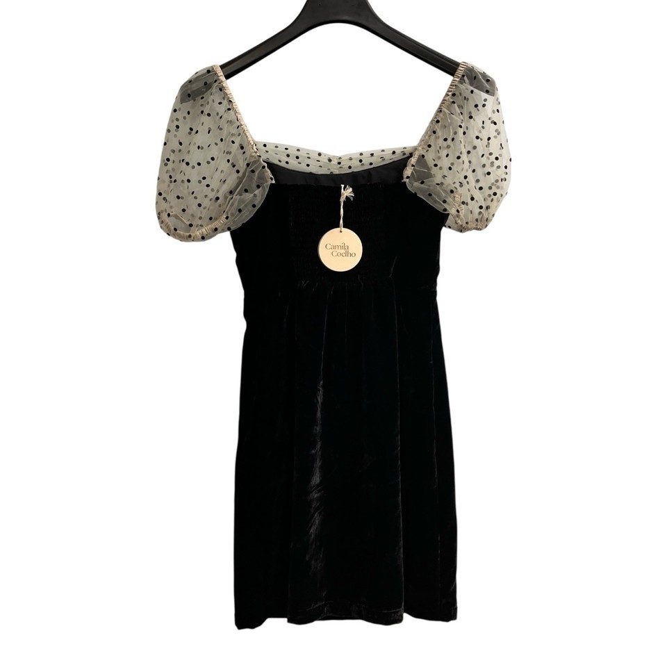 Camila Coelho Dress XS Black Velvet Heirloom Mini Tulle Polka Dot Puff Sleeve Y2K