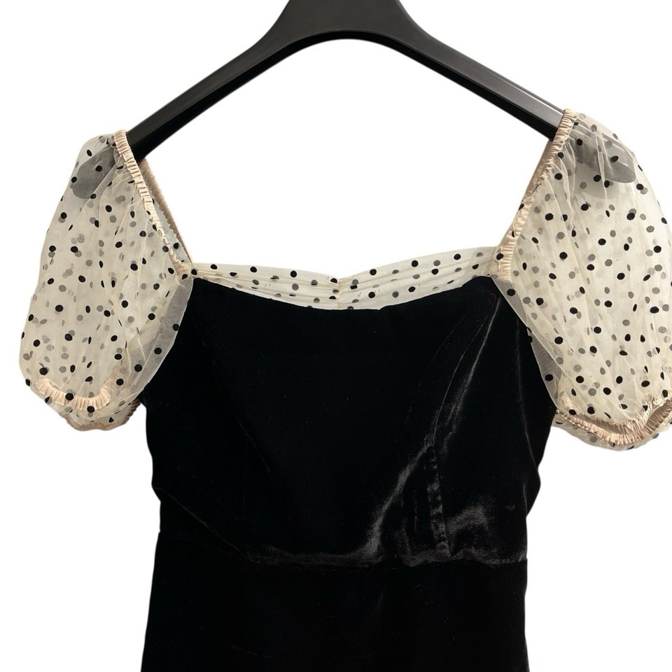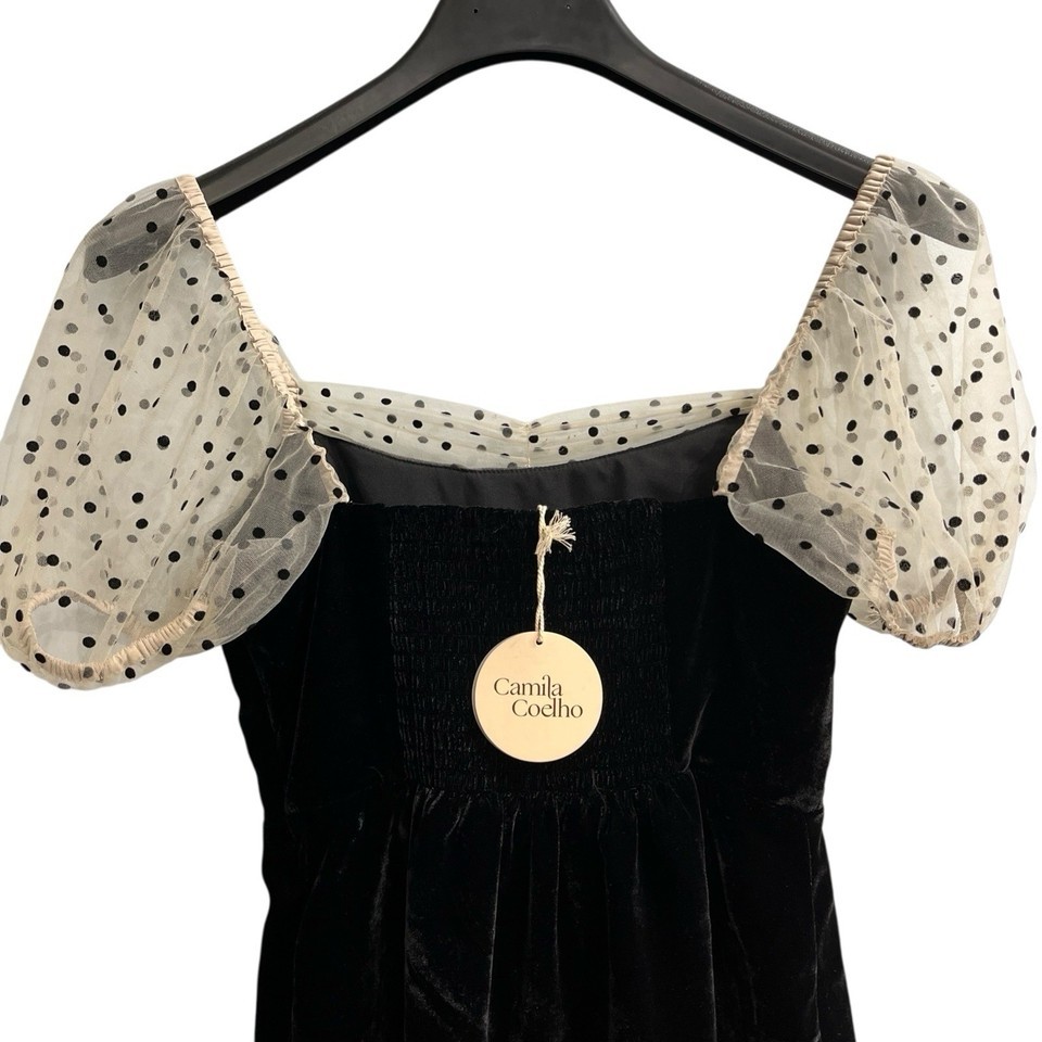 Camila Coelho Y2K Dress XS Black Velvet Heirloom Tulle Polka Dot Puff Sleeve