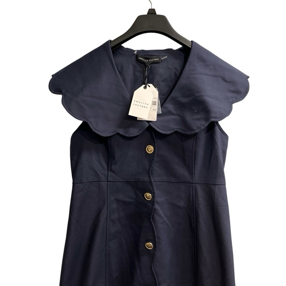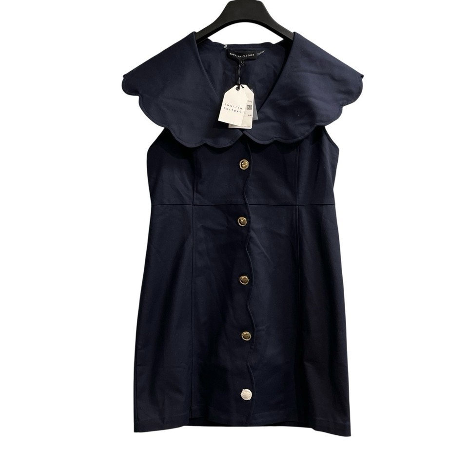 English Factory Dress Womens L Navy Blue Mini Scalloped Structured Preppy