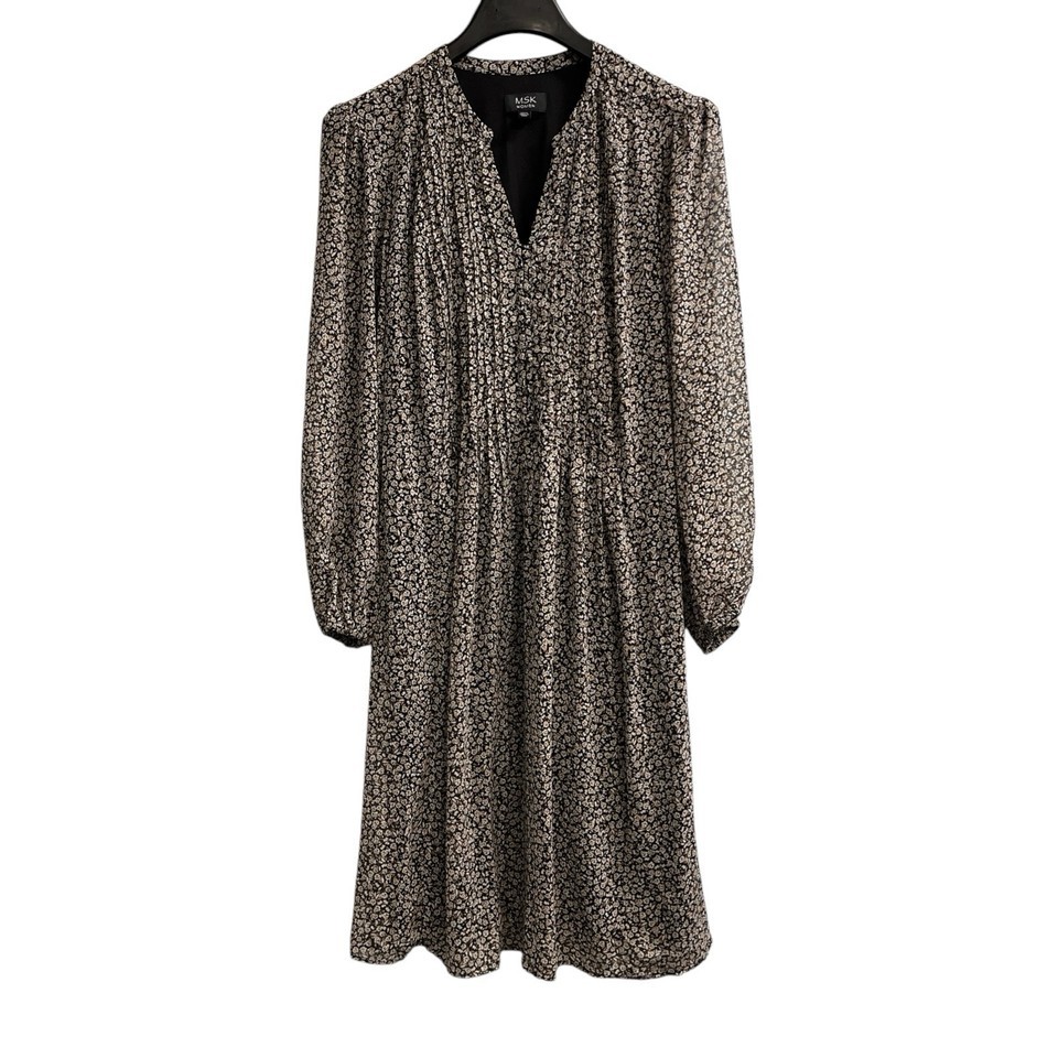 MSK Dress Women 20W Dark Floral Chiffon Pleated Pintuck Midi Lined Office Career