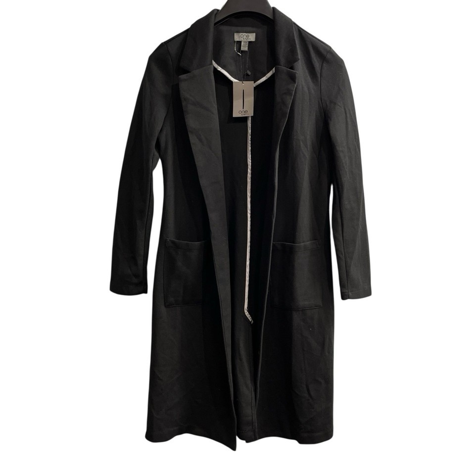 One By Chapter One Jacket Womens M Black Textured Long Open Front Capsule Office