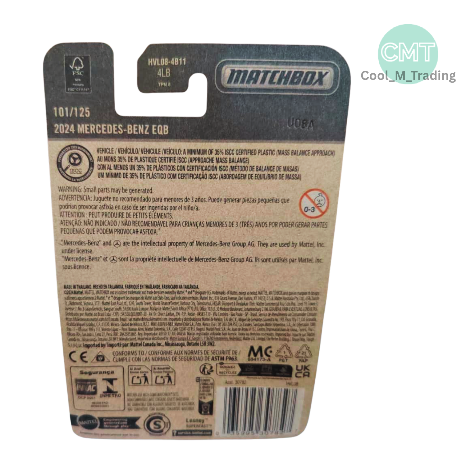 Featuring the sleek 2024 Mercedes-Benz EQB in white, this 1/64 scale diecast model captures realistic details and authentic Matchbox quality.