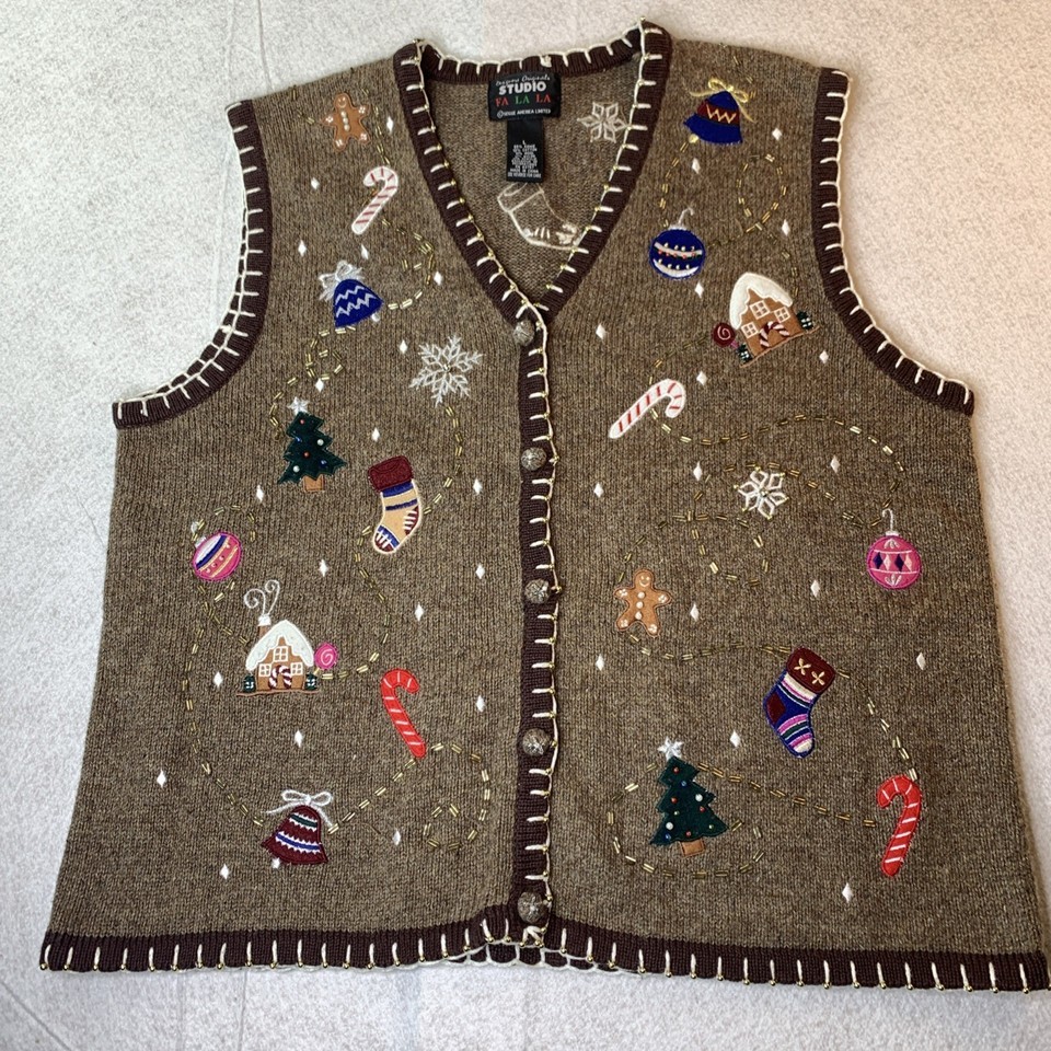 Vintage Designer Originals Studio Fa la la Christmas Winter Ornament Vest Size L