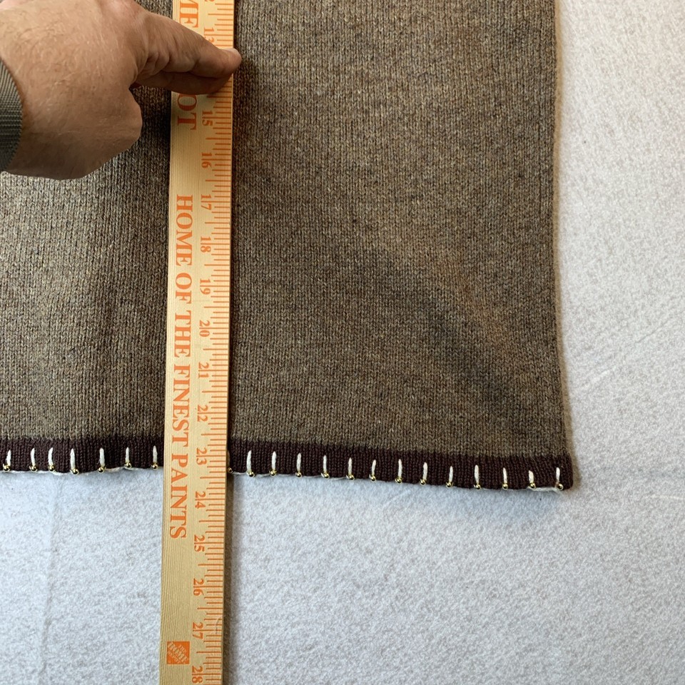 This Vintage Designer Originals Studio Fa la la Christmas Winter Ornament Vest in size L is a unique and festive addition to any winter wardrobe. The sleeveless vest features a V-neckline and is made from a cozy knit blend of ramie and cotton materials sourced from China. With a Christmas theme and snowmen character family, this brown-colored vest is perfect for adding a touch of holiday cheer to your ensemble. The vintage brand Designers Originals adds a classic touch to this stylish and cozy piece of clothing.