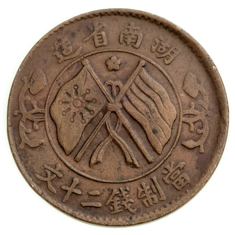 Nd (1919) Chine, Province du Hunan 20 Cash Coin, Extra Fine Status, Y 400.7