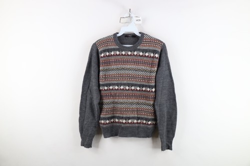 Vintage 70s Streetwear Boys Size Large Rainbow Fair Isle Knit Crewneck Sweater