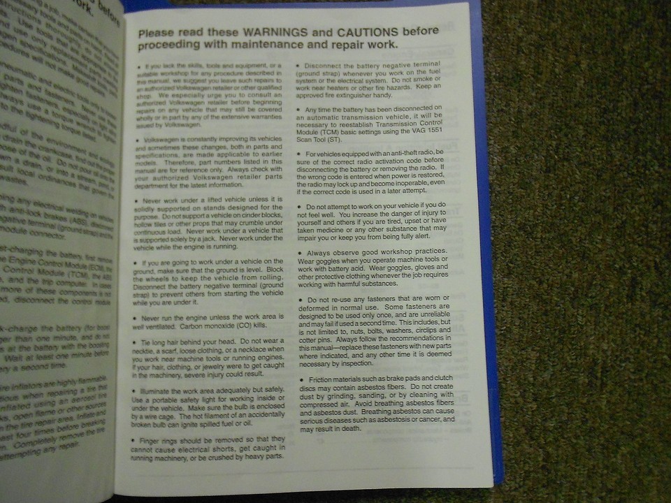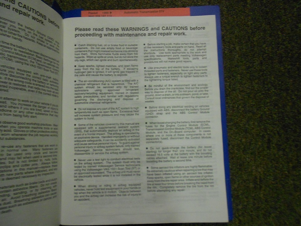Loads of information and illustrations, step by step Instructions, exploded illustrations and/or diagrams, great manual to have when you own a VOLKSWAGEN Passat. This manual will save you money in Repairs/Service.