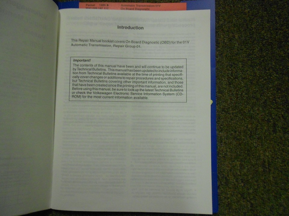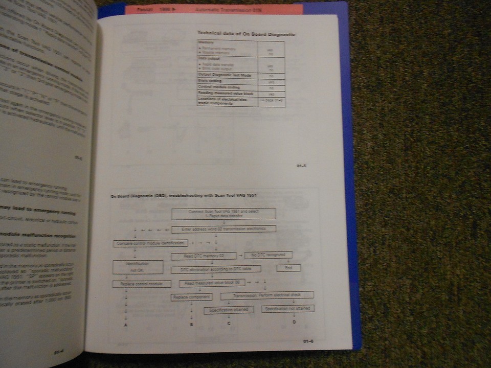 1998 99 00 01 02 Volkswagen Passat Automatic Trnasmission 01N On Board Diagnostic (OBD) Manual