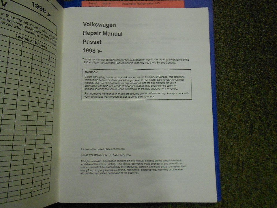 1998 99 00 01 02 VOLKSWAGEN PASSAT AUTO TRANS 01V SERVICE MANUAL SET