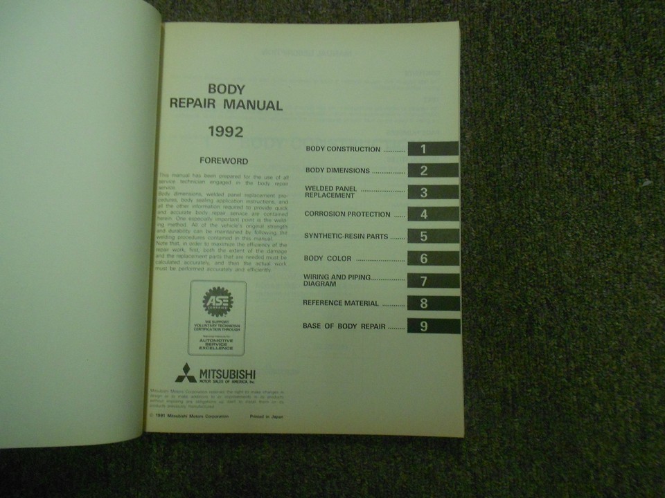 1992 Mitsubishi Mirage Body Repair Service Shop Manual