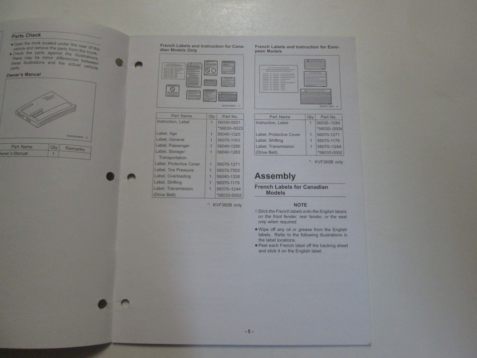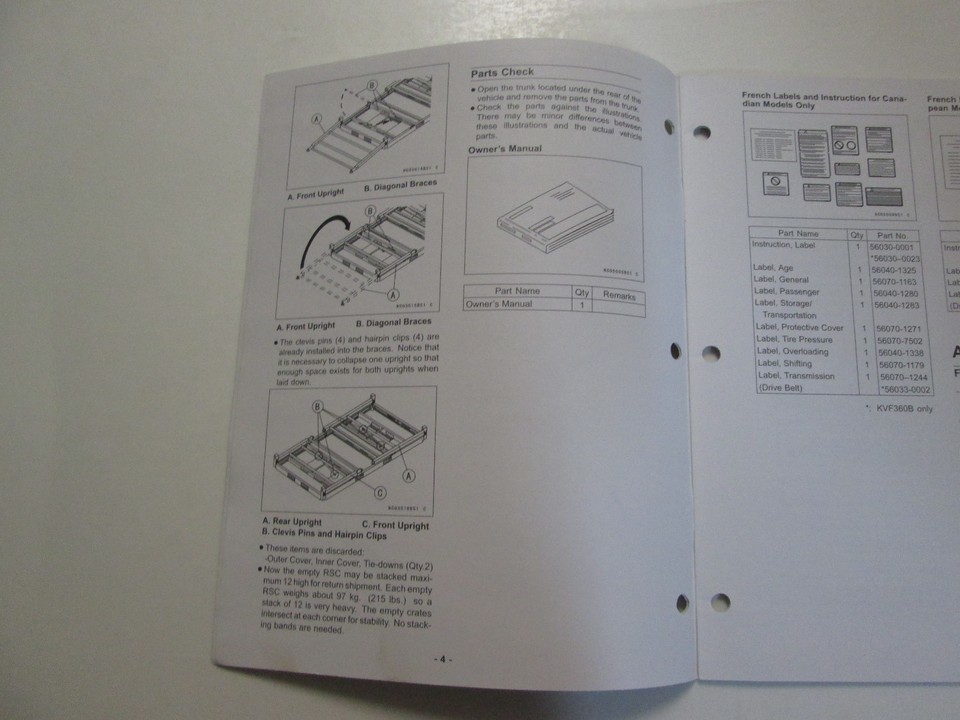 2003 Kawasaki ATV KVF360 A1 A2 B1 B2 C1 C2 Assembly Preparation Manual OEM