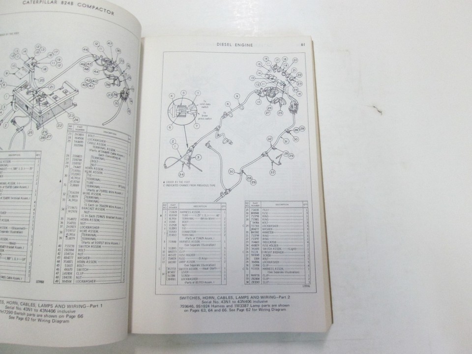 CATERPILLAR 824B COMPACTOR 43N1 TO 43N493 PARTS BOOK MANUAL MINOR STAINS