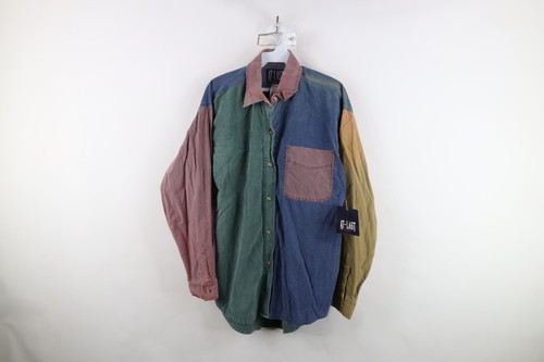 Deadstock Vintage 90s Streetwear Womens Small Color Block Corduroy Button Shirt