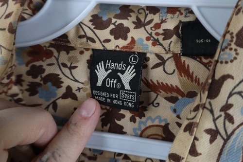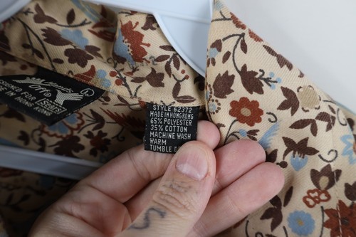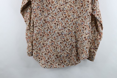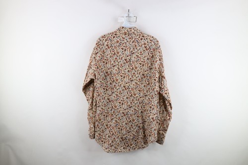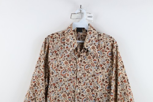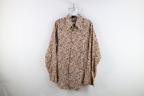 Vintage 70s Mid Century Modern MCM Mens Large Flower Bird Tapestry Button Shirt