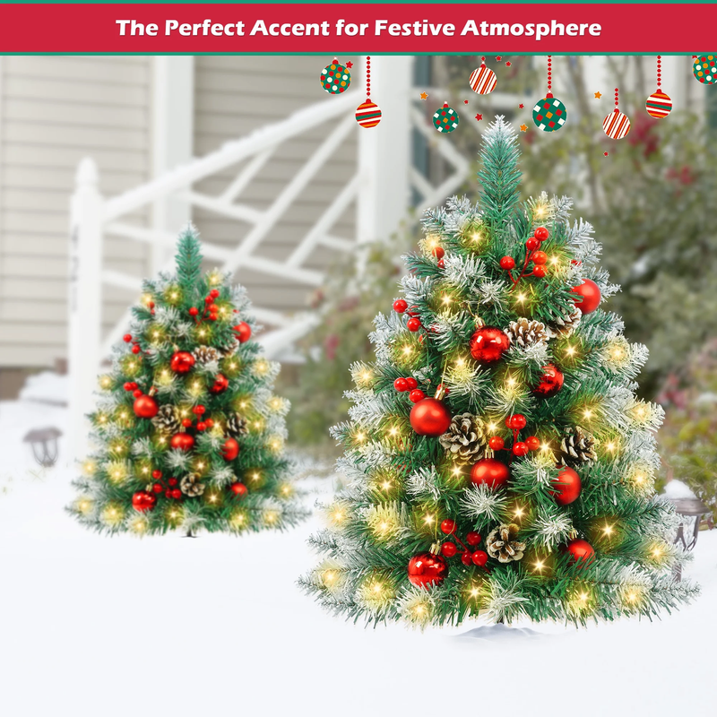 2PCS Small Outdoor Christmas Trees with LED Lights,30" Artificial Xmas Decora fo