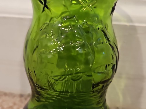 Indiana Glass Juice Glass 4 Fl Oz, Green Ship Design Vintage