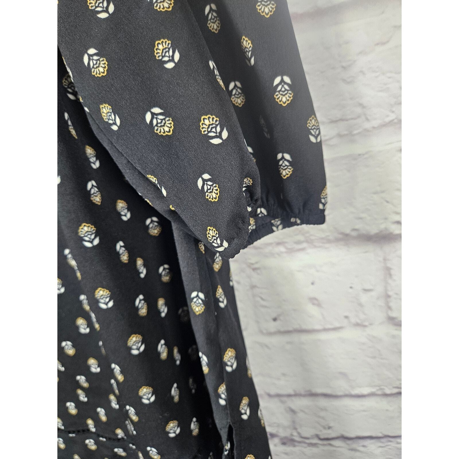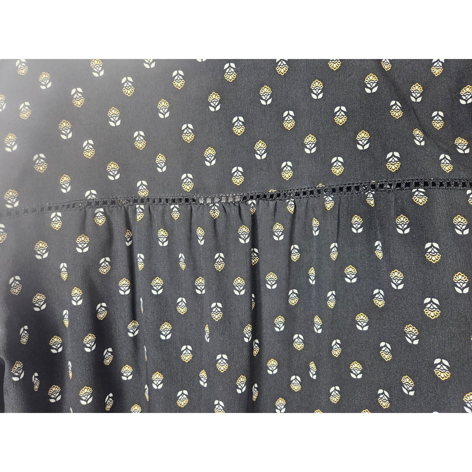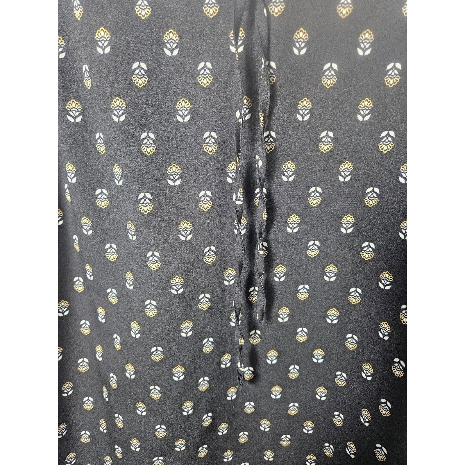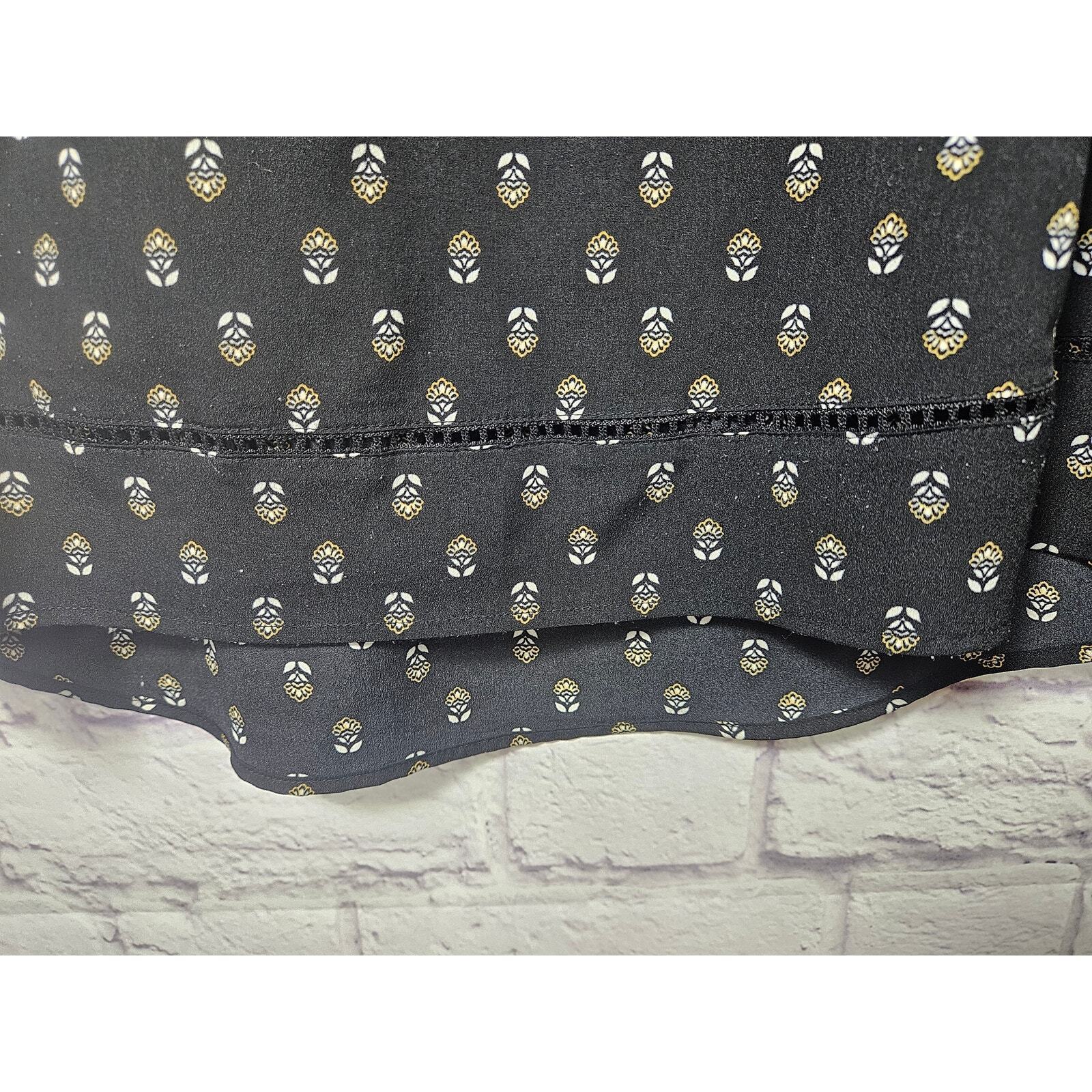 Princess Vera Wang Women's Blouse Top Large Black Yellow Floral Print Cut Outs