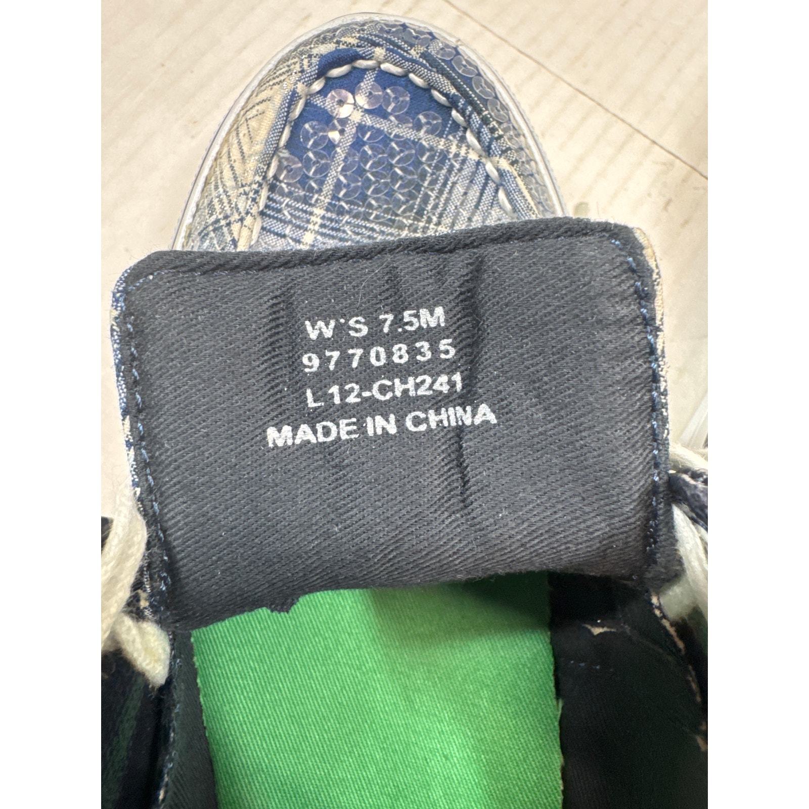 Sperry Top Sider Womens Navy White Sequin Lace Up Flat Loafer Boat Shoe Size 7.5