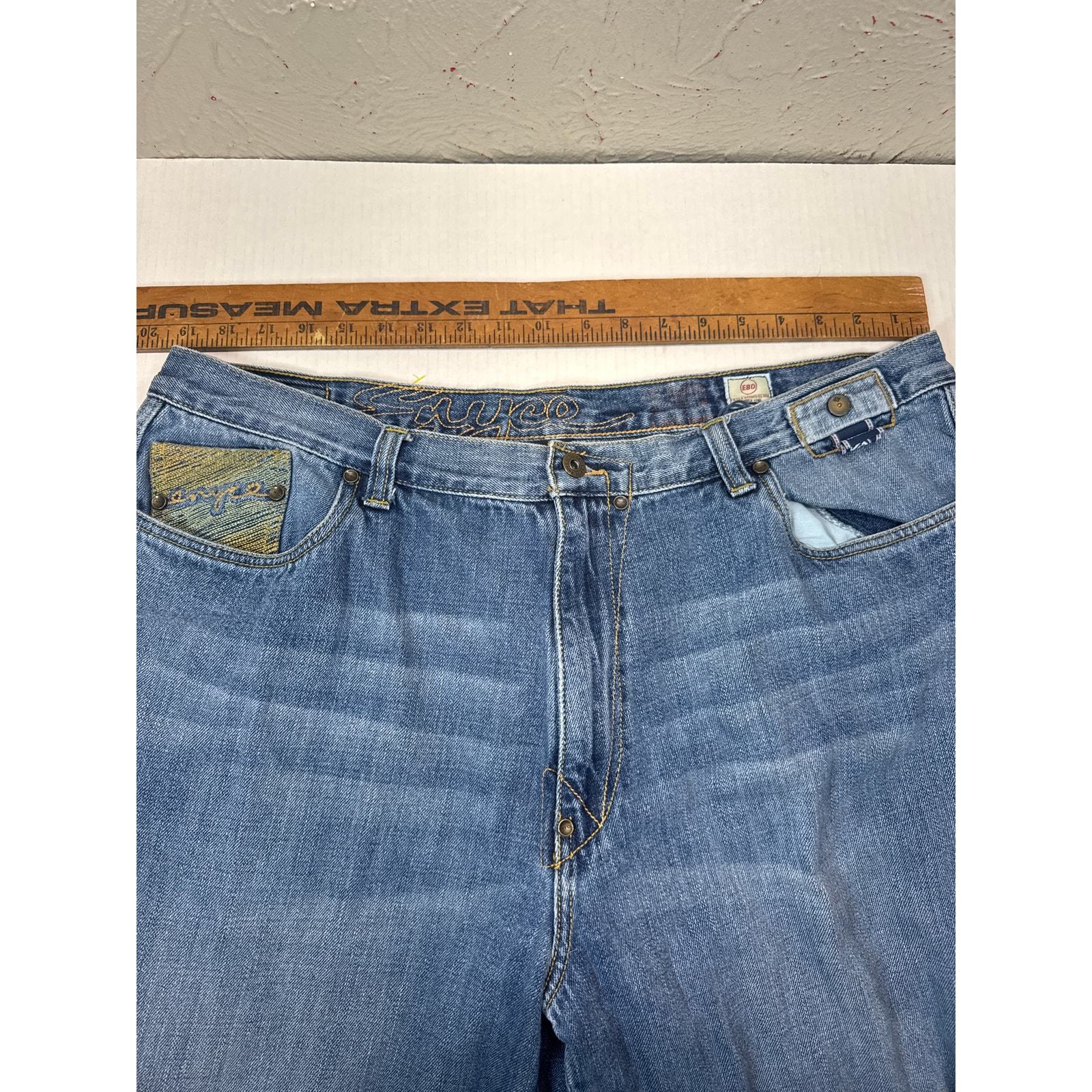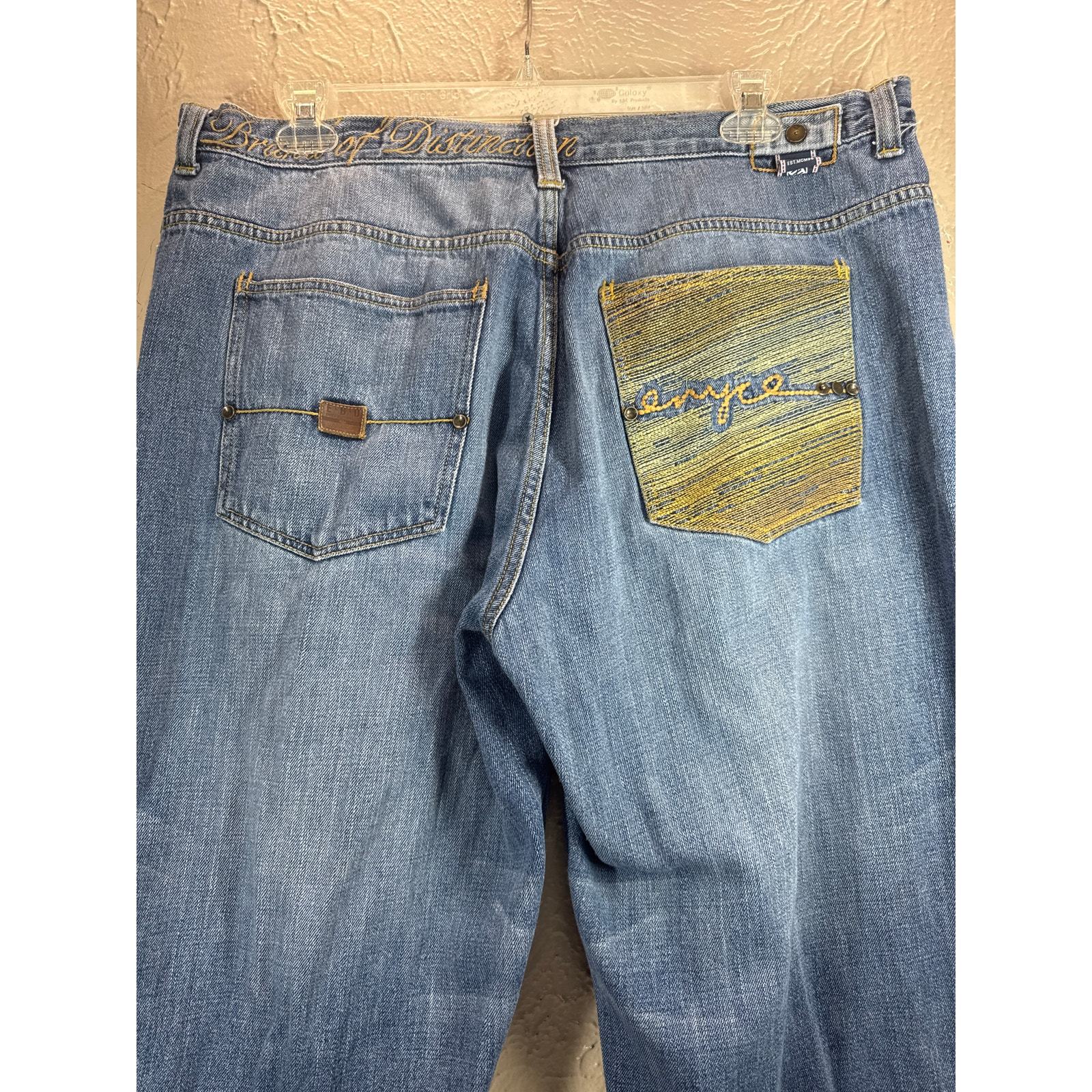 ENYCE Jeans Mens Baggy Y2K Skater Wide Pipe Leg Embroidered Street 40x32 Vintage