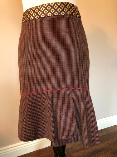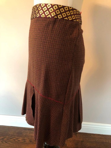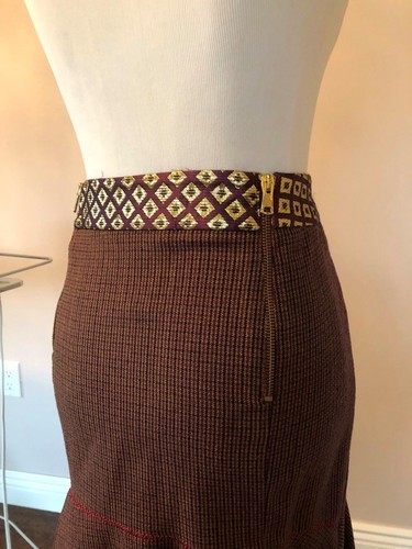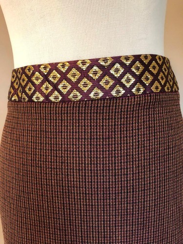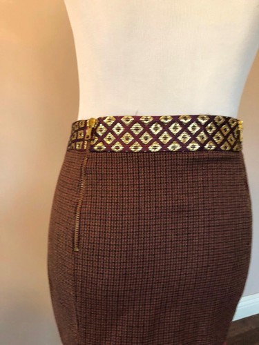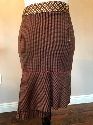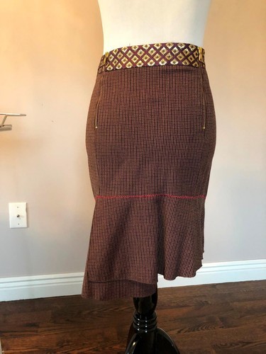 NWOT BLUMARINE Gold Trimmed Wool Tramped Skirt SZ IT 46/US 12 Made in Italy