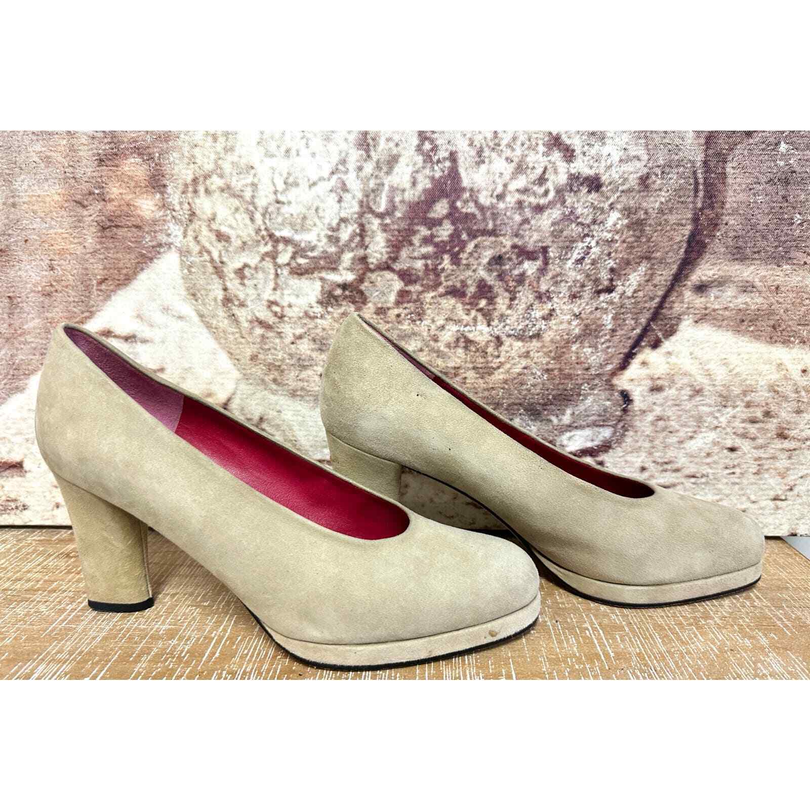 80s VTG Charles Jourdan Bis Tan Suede Leather Platform Pumps Block Heel Spain 8M