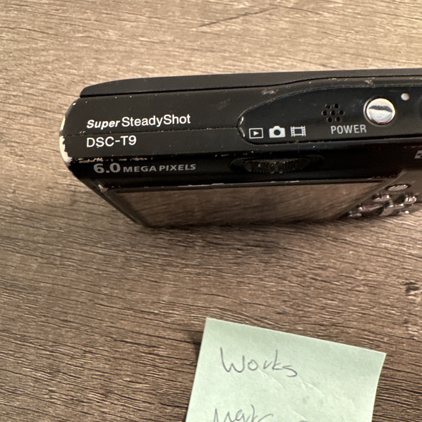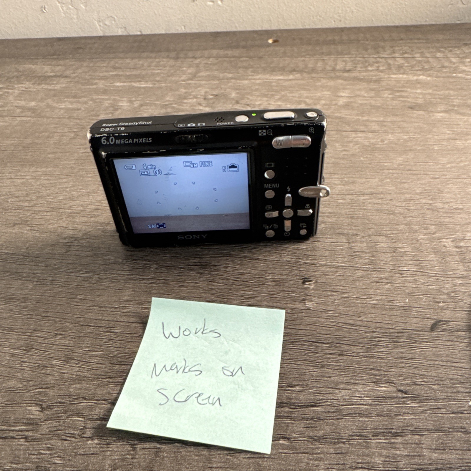 Sony Cyber shot DSC-T9 6.0MP 3x Compact Digital Camera Black WORKS MARKS ON SCRN