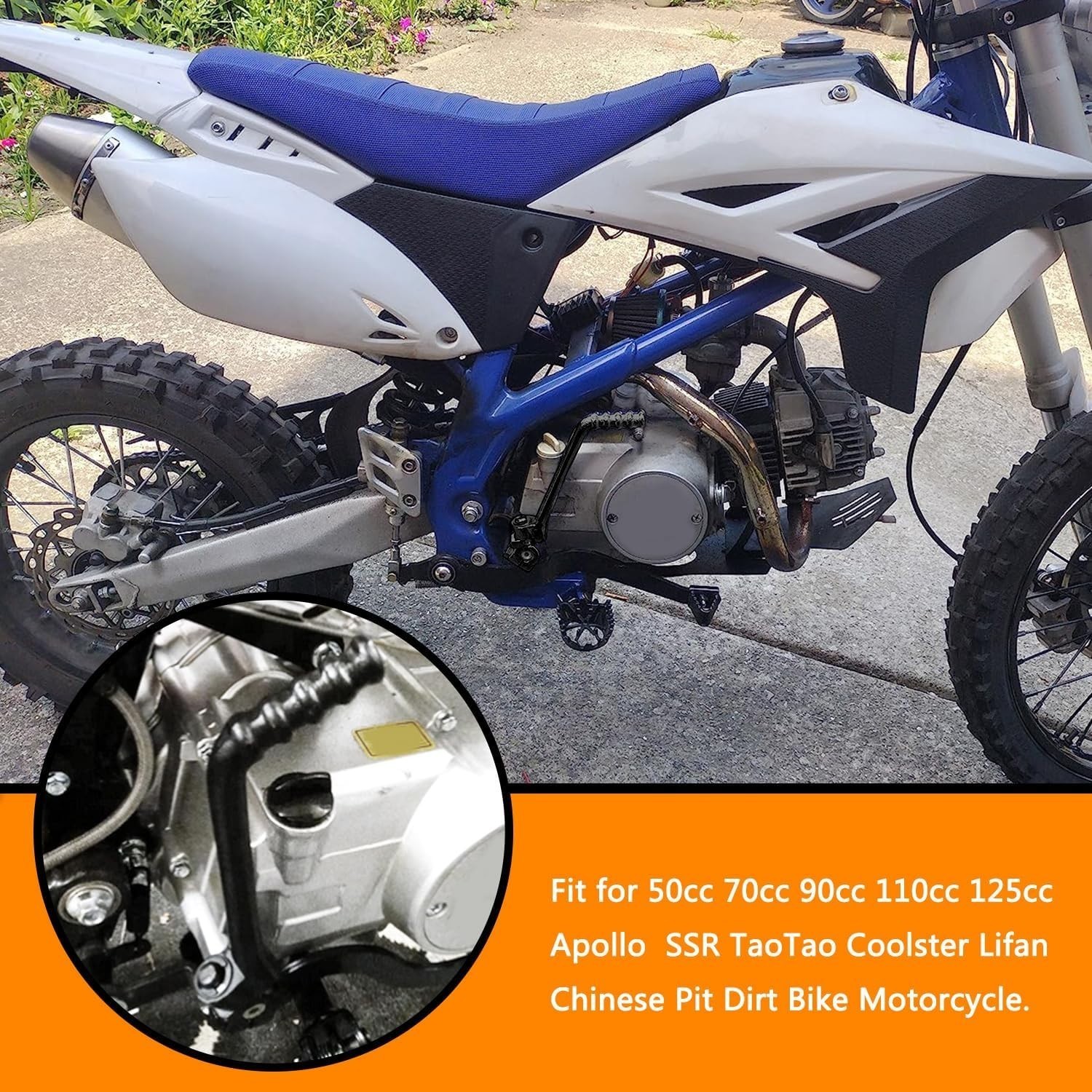? Fit for 50cc 70cc 90cc 110cc 125cc chinese pit dirt bike, such as: SSR110 SSR125 SSR160TX, Suzuk*DS80, Yamah* TTR110 PW80, Hond* CT70 CT90 XR100R XL70, XPRO 125, Apollo Z20 125cc, Apollo RFZ 125, Apollo RFZ DBX14 DBX18, Apollo XC18 125cc, Taotao DB27 Pit Dirt Bike.