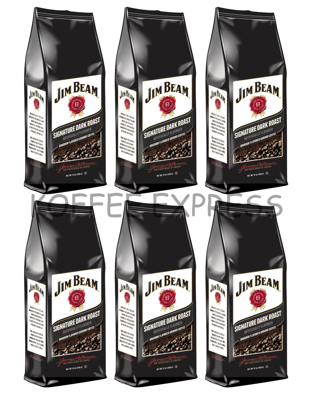 This sale is for 6 - 12 oz bags of Jim Beam Signature Dark Roast Bourbon Flavored Ground Coffee