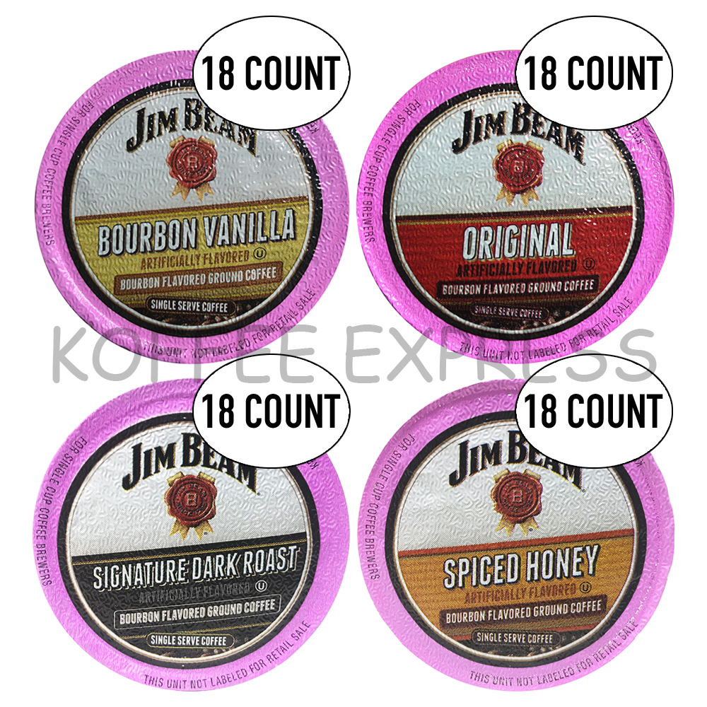 Jim Beam Coffee Single Serve Cups, Vanilla, Original, Dark, Honey, 18 cups ea.