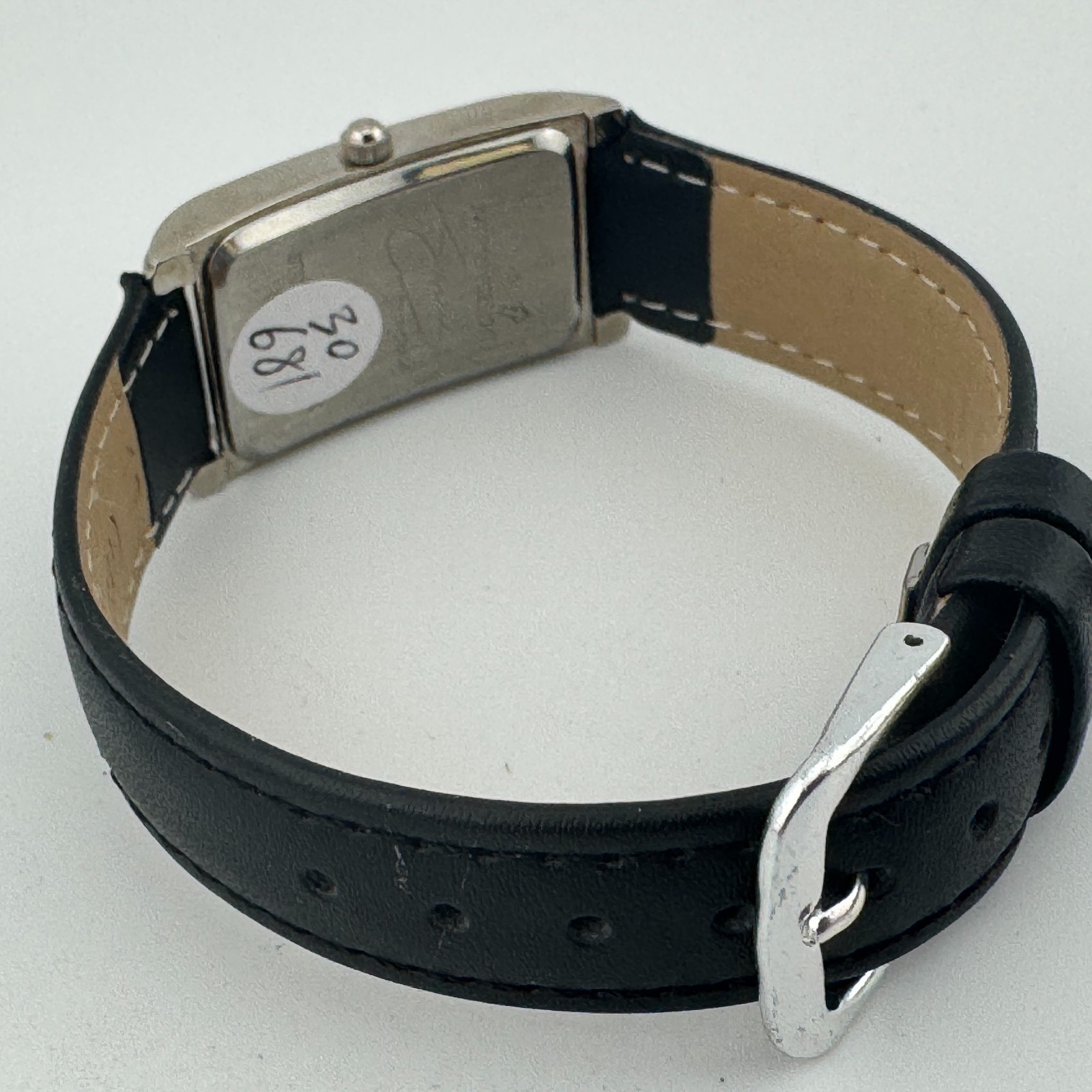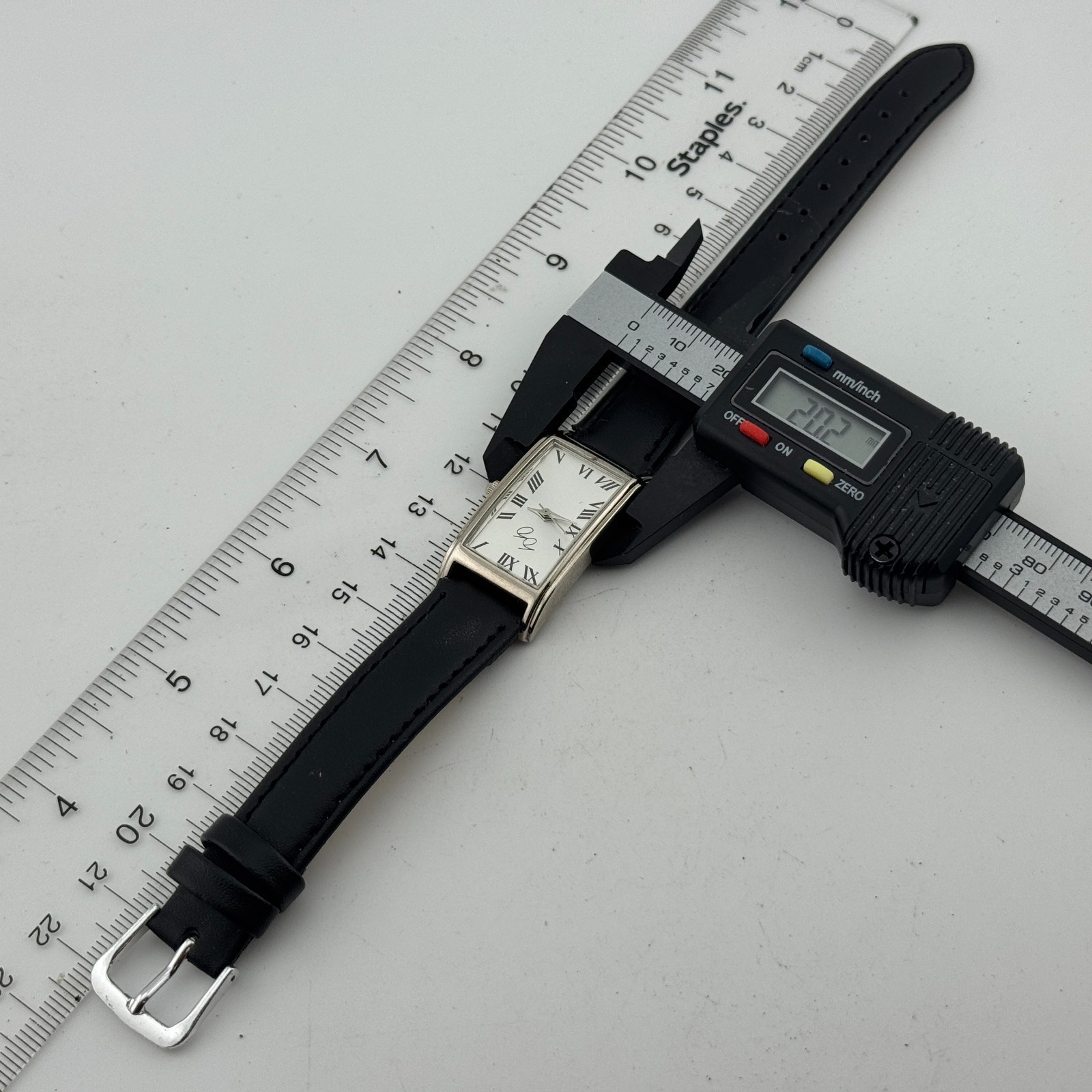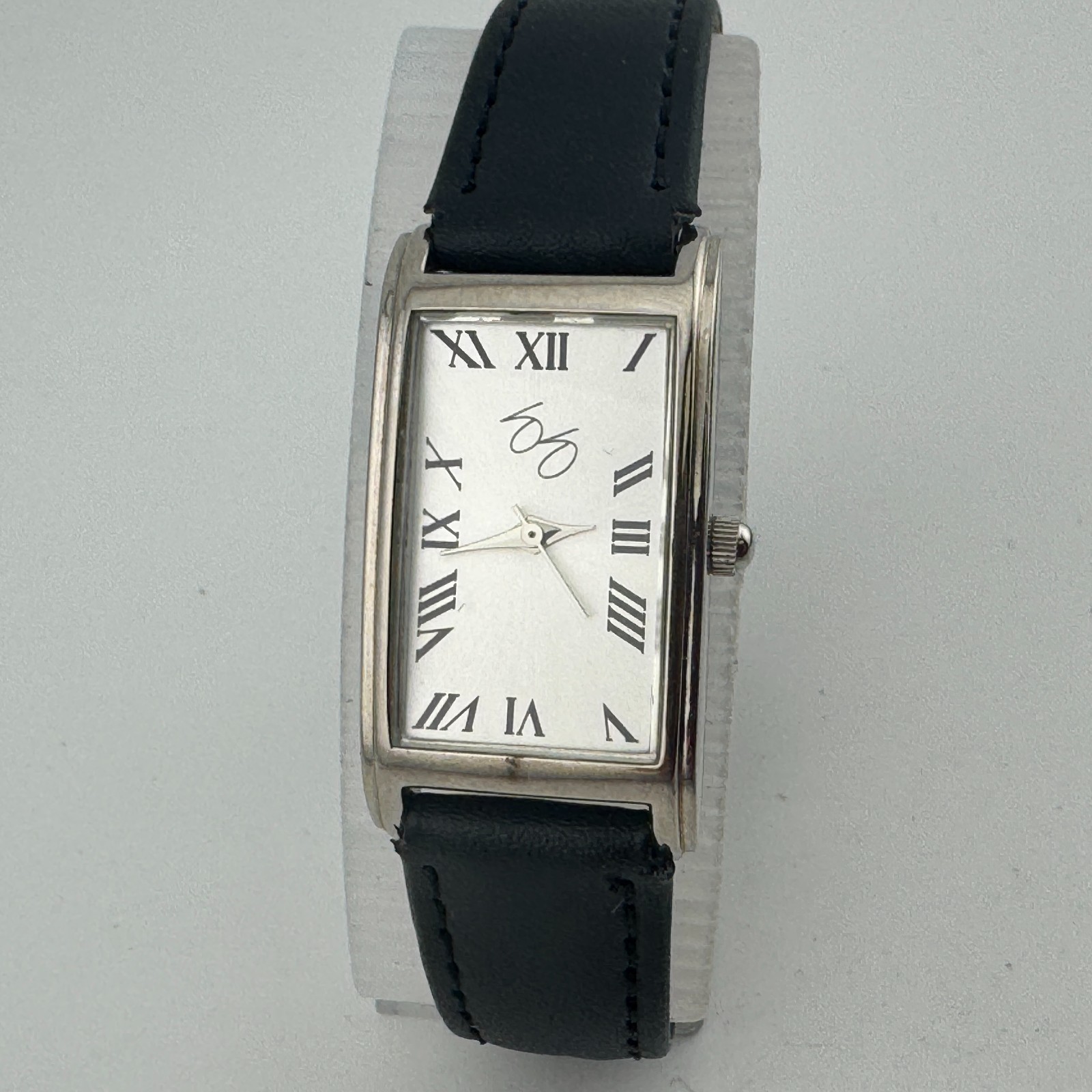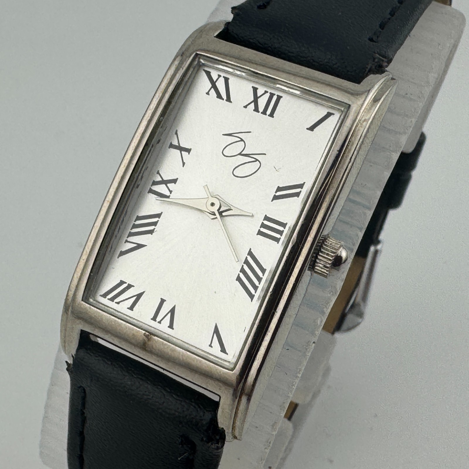 Suzanne Somers Quartz Watch Women Silver Curved Rectangle Leather New Battery