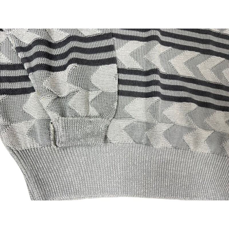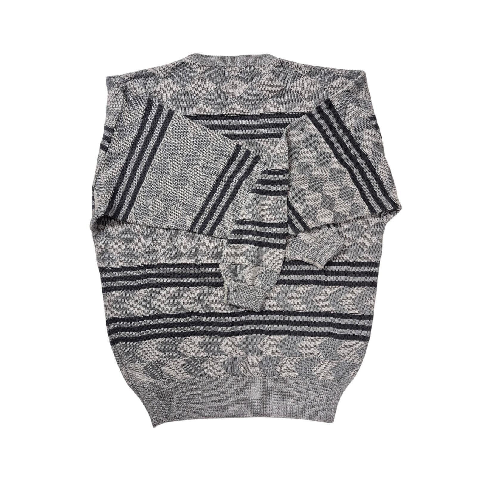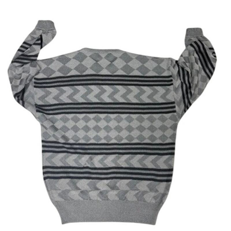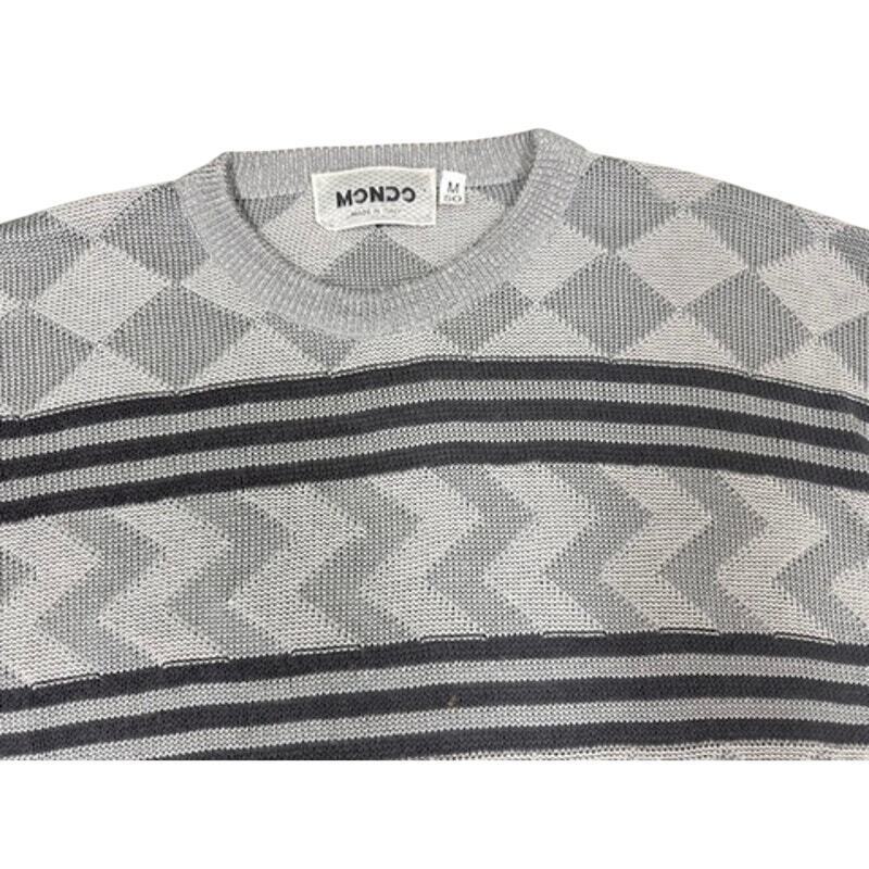 90s Y2K Mondo Italian Mens Sweater Silver/Black Diamond Stripe Zigzag Sz M