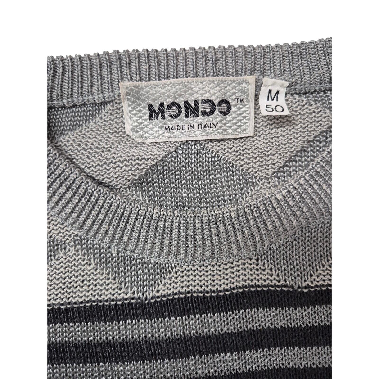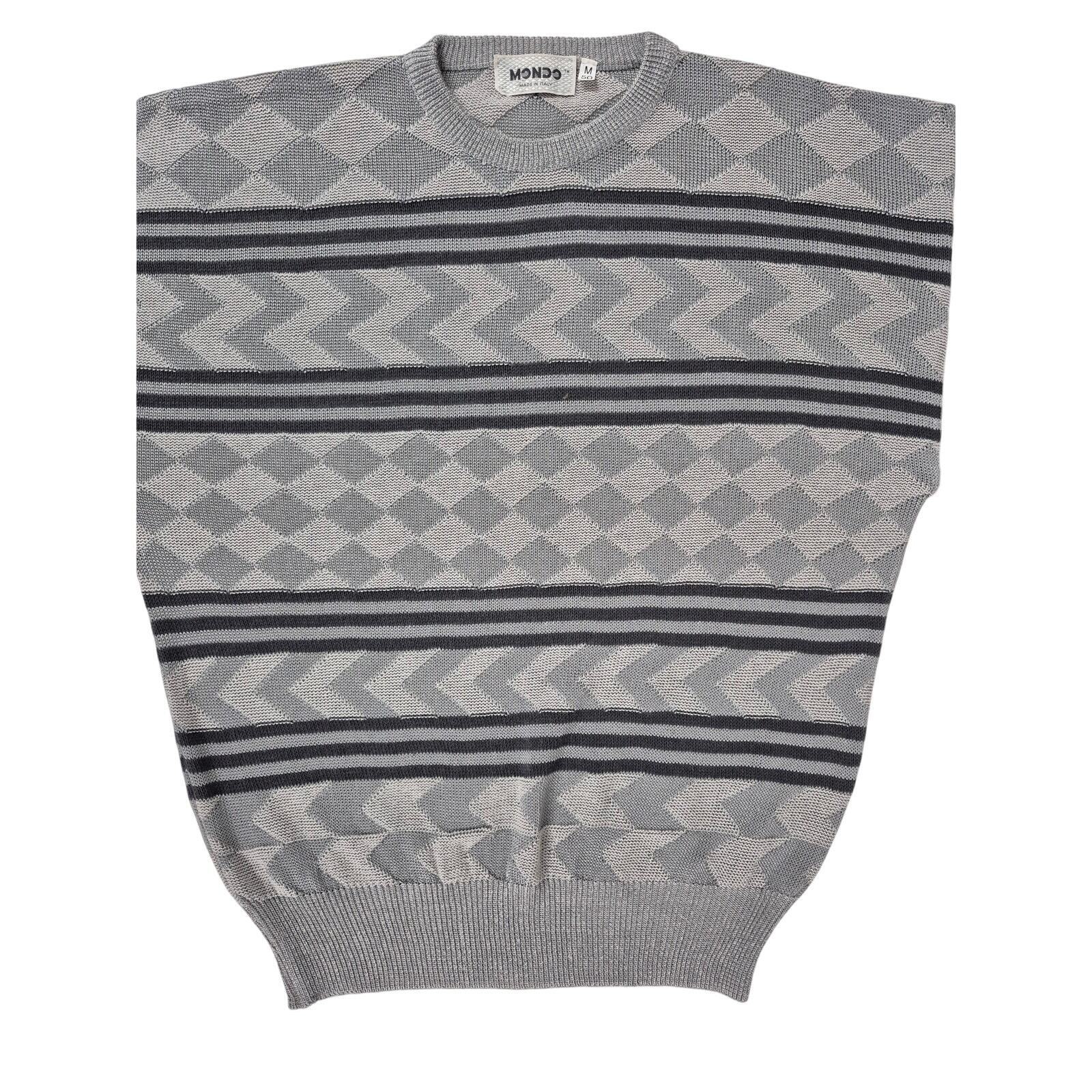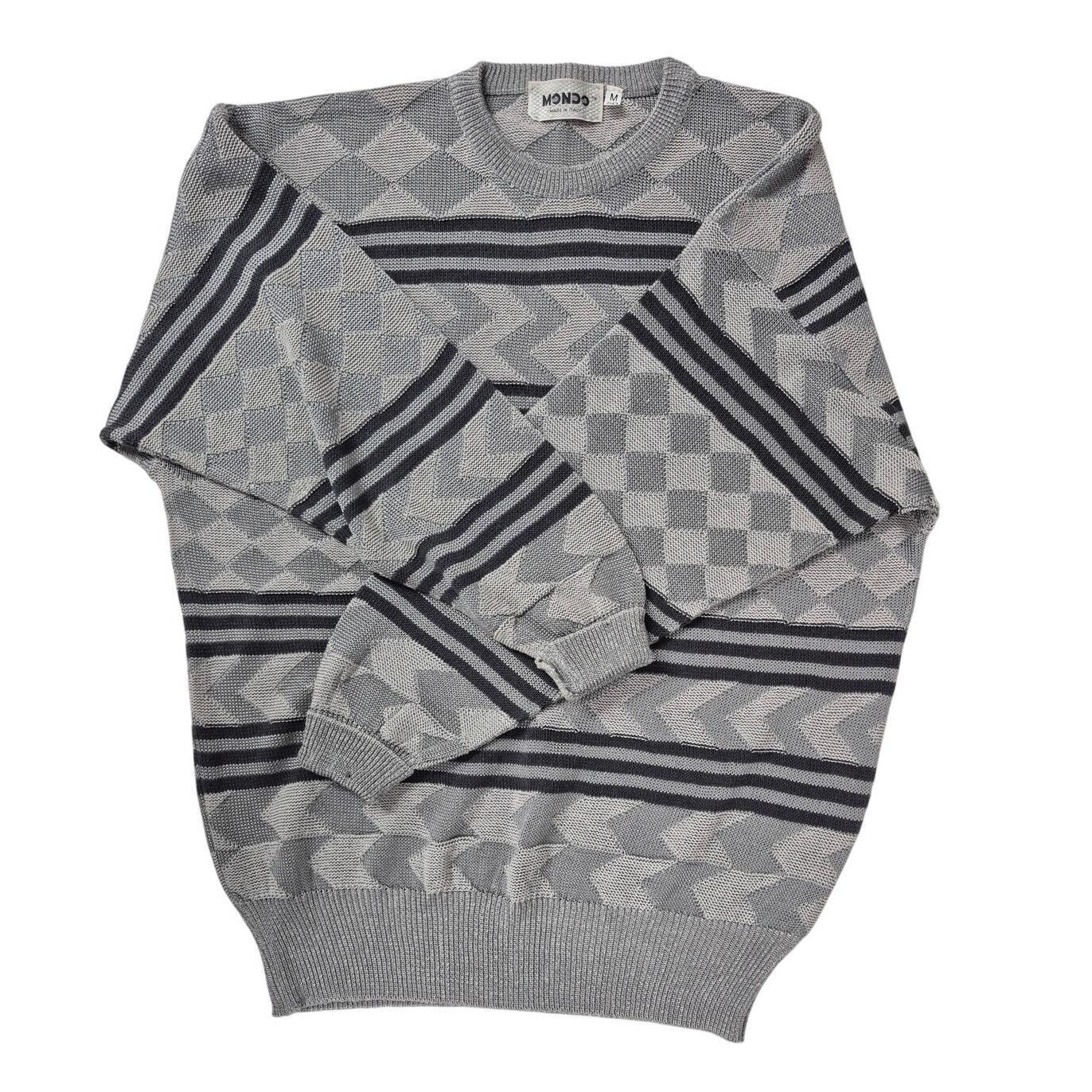 90s Y2K Mondo Italian Mens Sweater Silver/Black Diamond Stripe Zigzag Sz M
