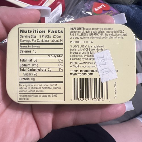 Vintage I LOVE LUCY Tin Metal Box Predic-a-Mints Peppermint Empty Canister