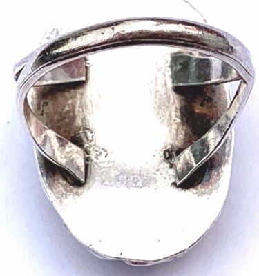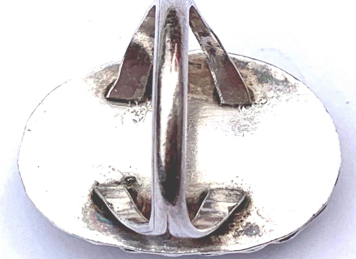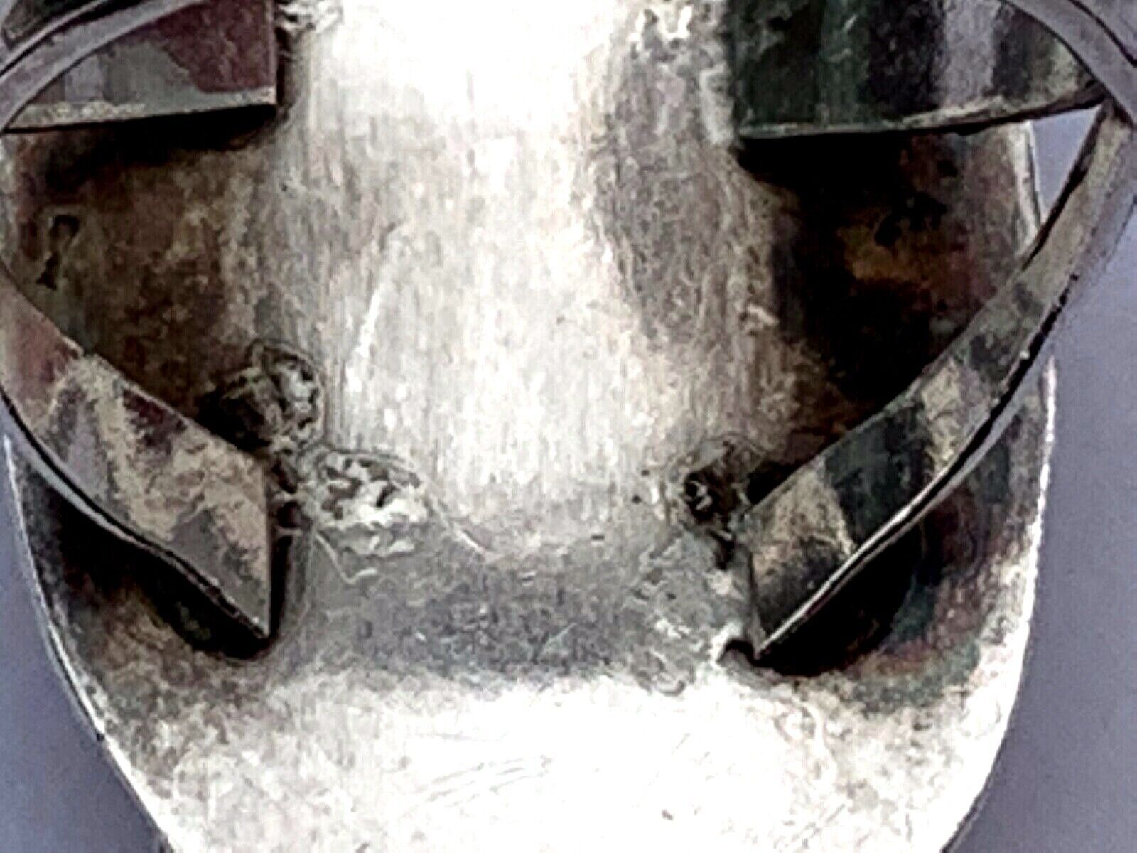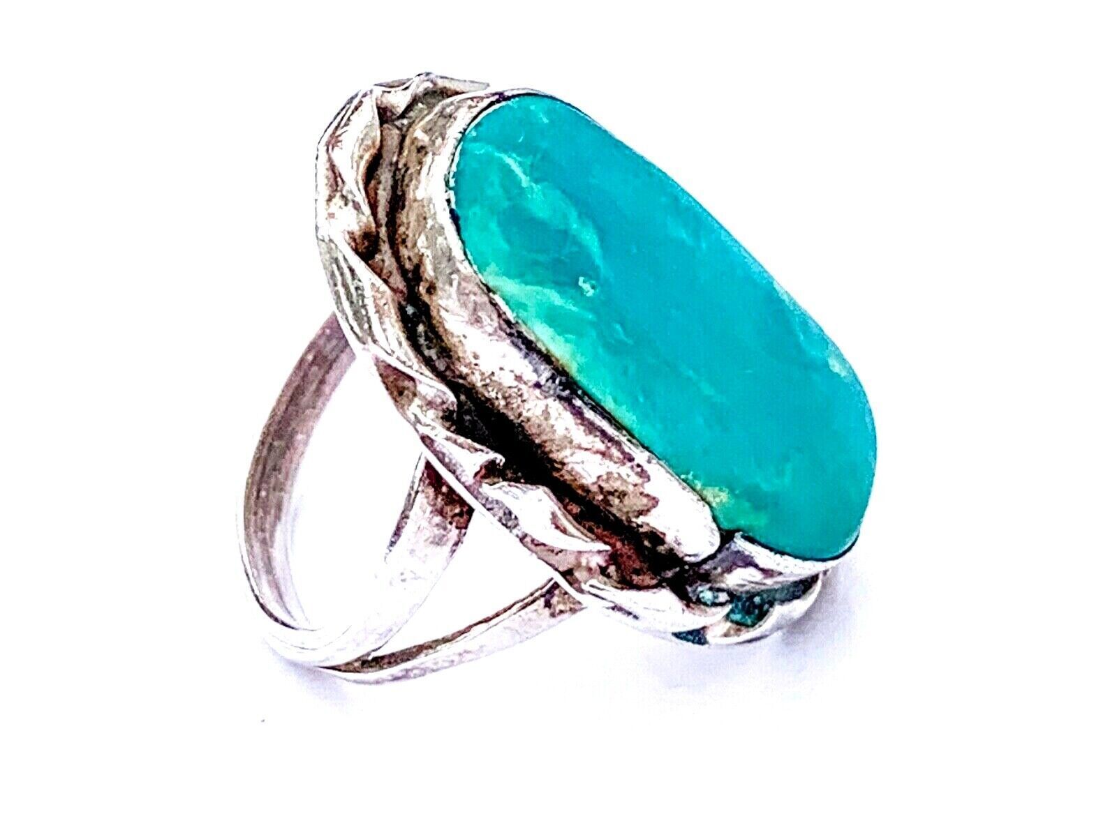 authentic vtg native American Navajo sterling turquoise twisted ring 4- weighs 6.1 GR on the jewelry scale- the top is 1" tall, and it is sterling silver, though not marked has some sort of signature on the back as shown. I cleaned it with silver polish because it was black..
