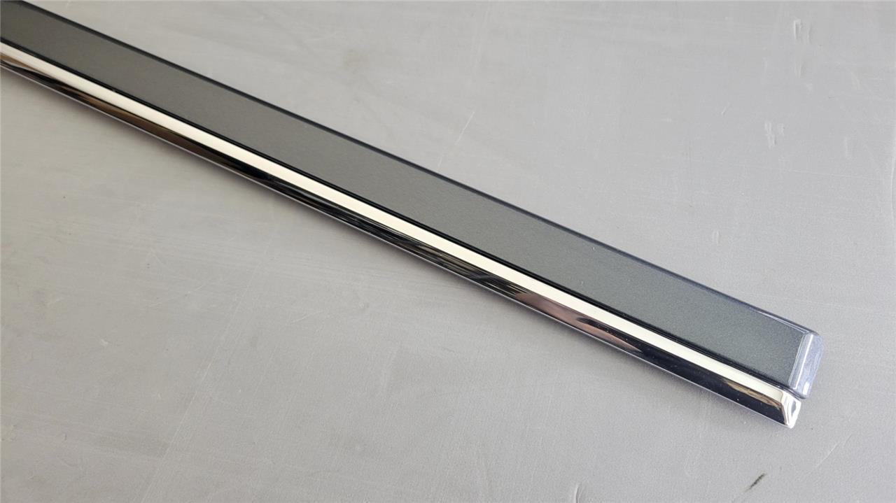 This ad is for an OEM Cadillac DTS Left Rear Door Exterior Trim Molding. For the driver's side back door. This has already been factory painted "Cyber Gray / 637R". It has chrome trim on it as shown on the pictures.