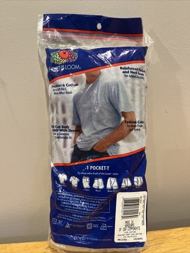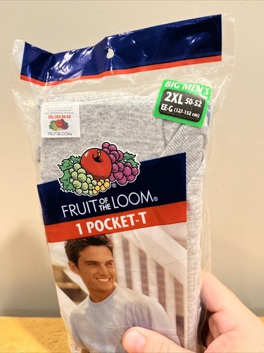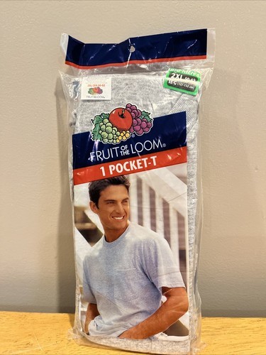 Vintage Fruit of the Loom 1 Pocket T Shirt 2XL Gray New Old Stock 2002
