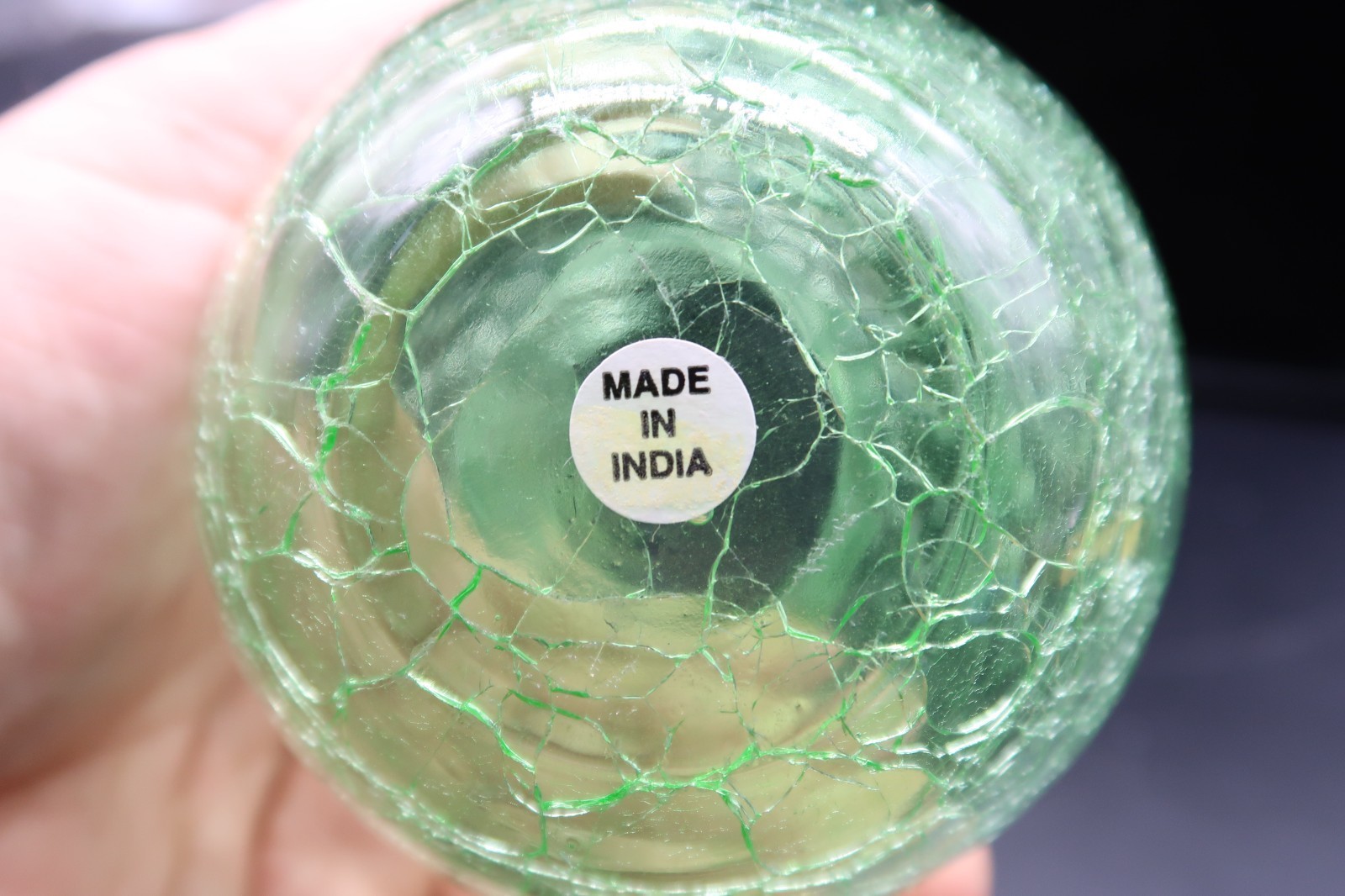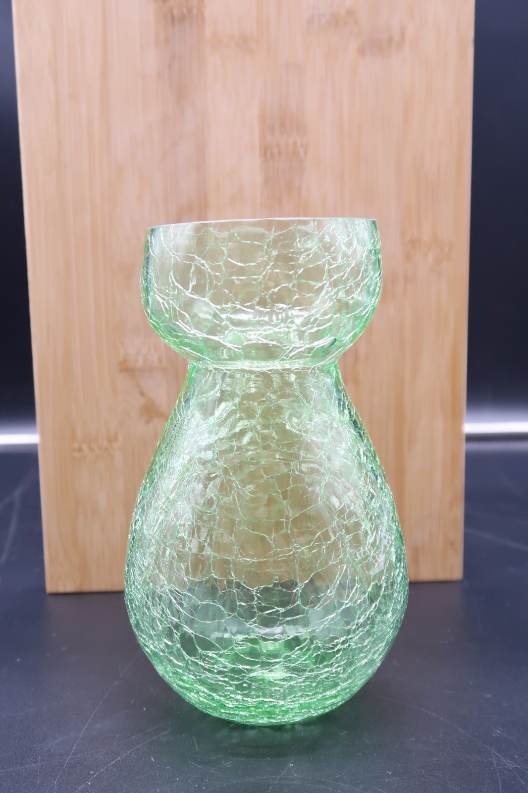 Vtg Crackle Glass Vase Green 6" Made in India Table Decor