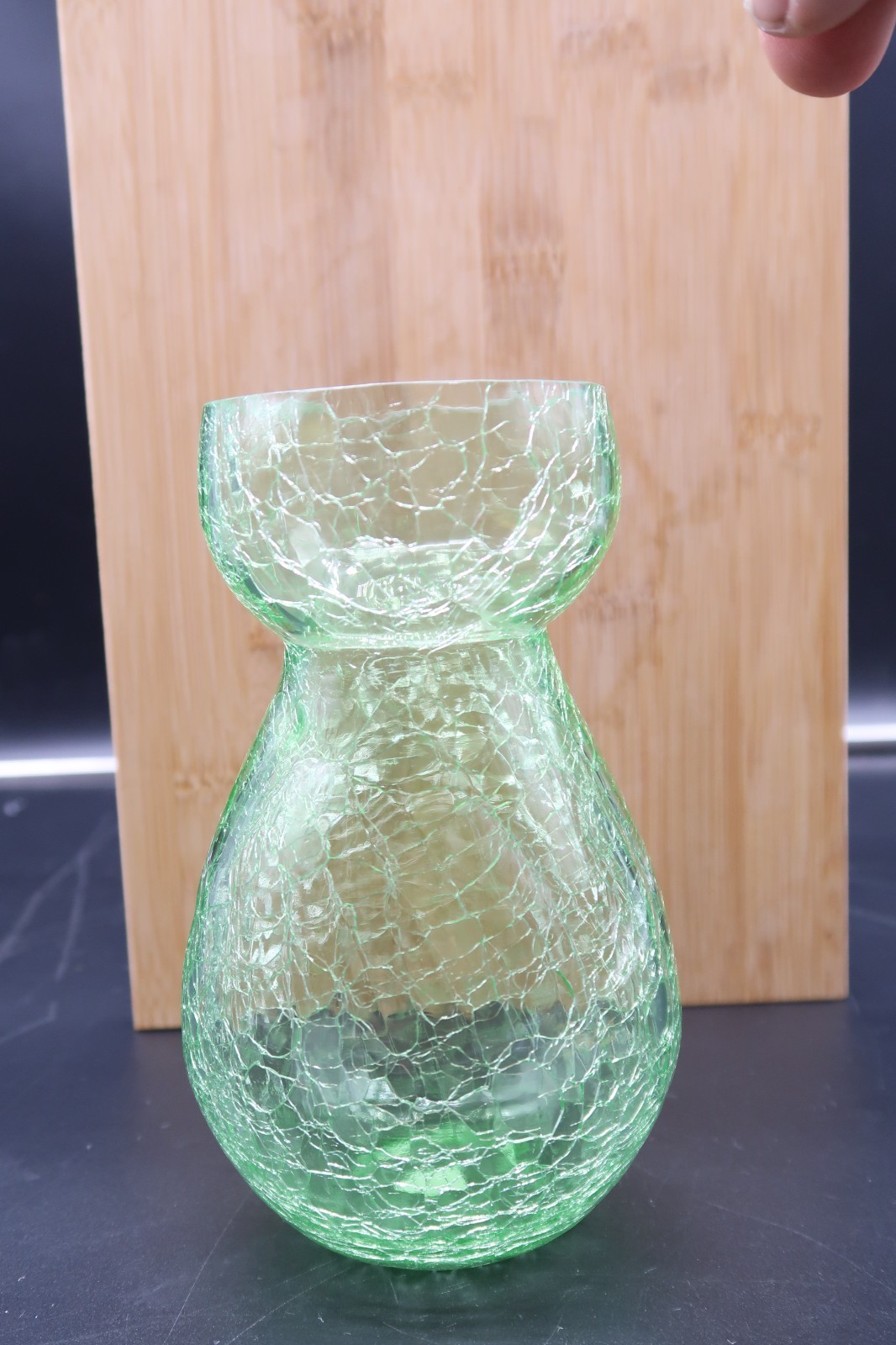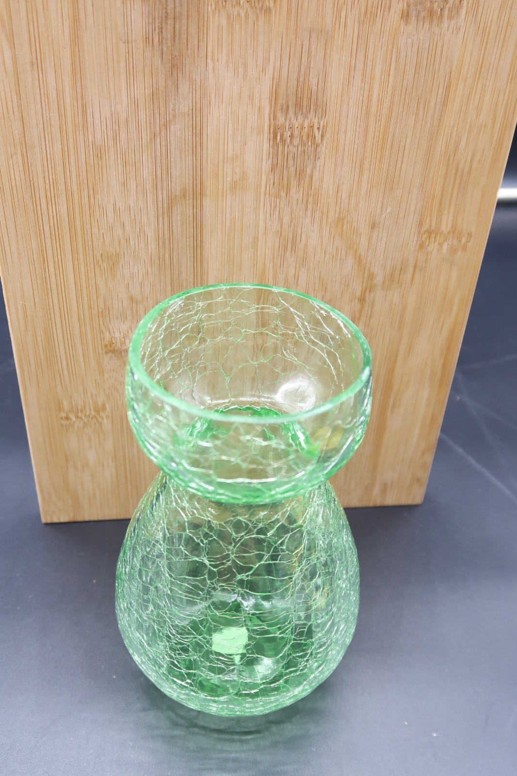 Vtg Crackle Glass Vase Green 6" Made in and similar items