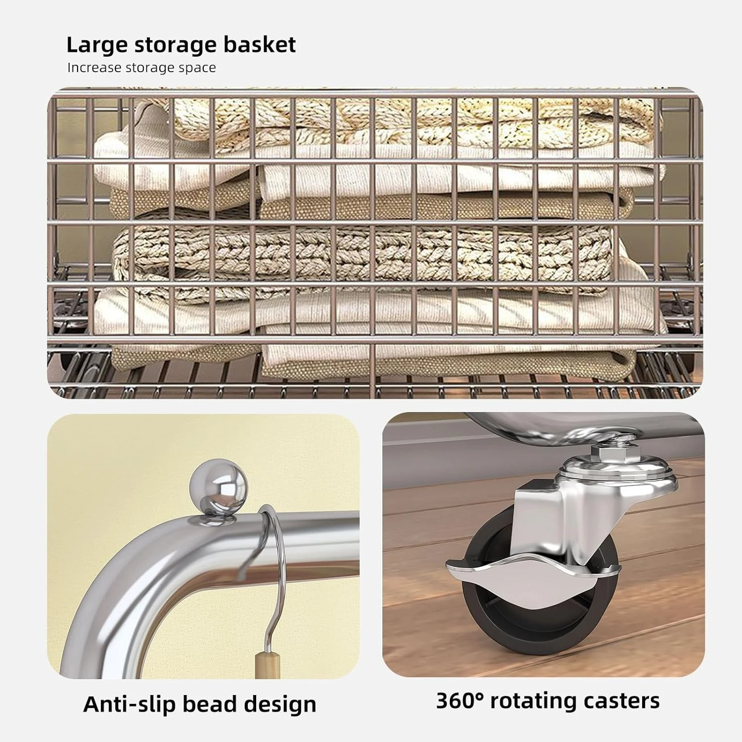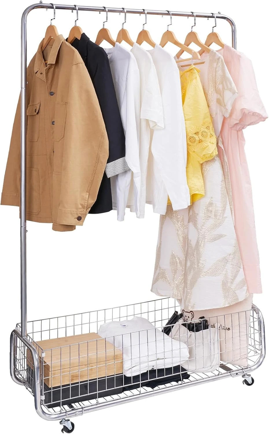?Easy to assemble?Simple and stable structure makes the metal rolling clothes rack easy to assemble. This heavy duty hanger comes with the necessary tools and assembly instructions, you can easily assemble it without additional tools.