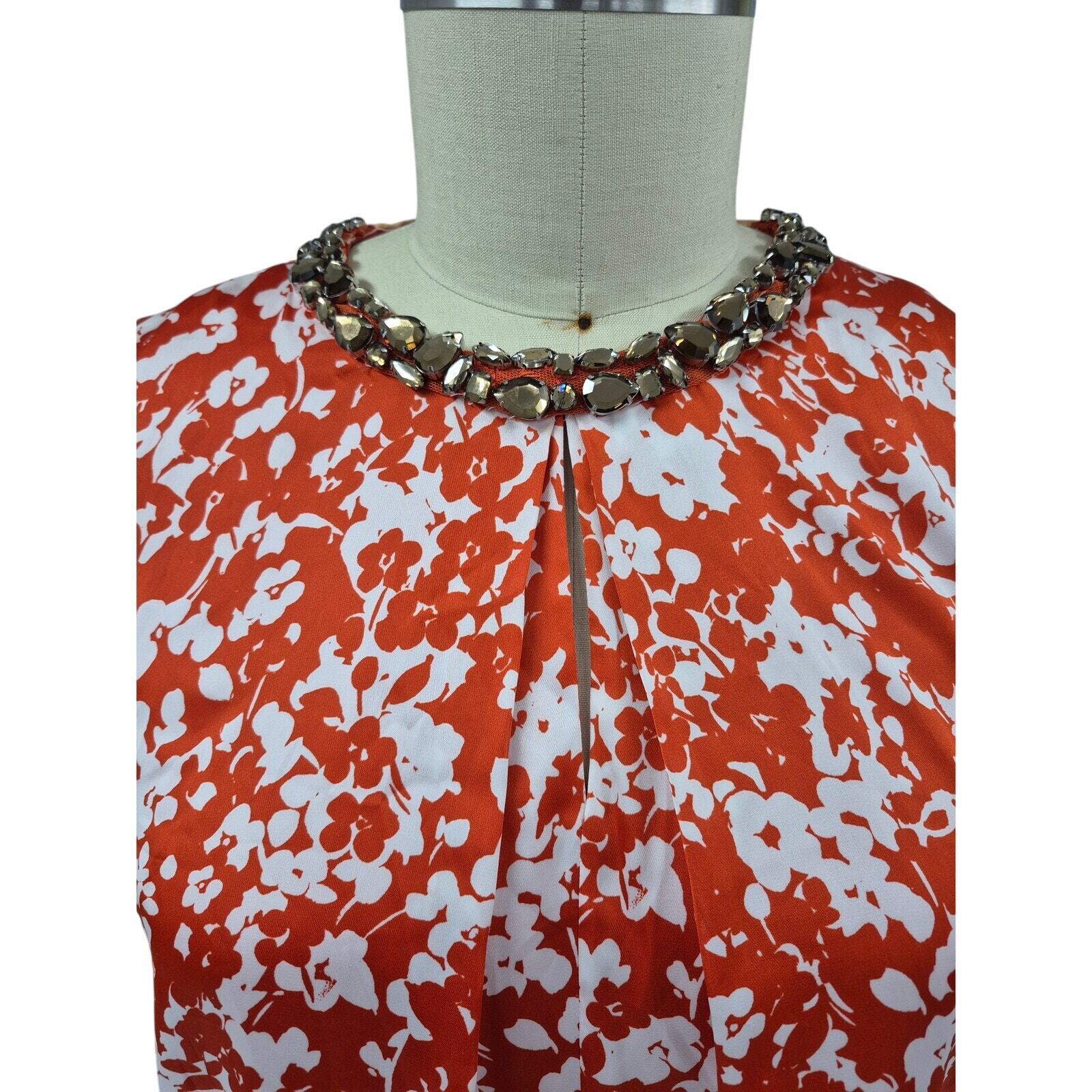 Jones New York Collection Sample Orange dress Tank Smokey Rhinestone Collar Peek-a-boo pleated front white Floral print Zipper back Sz 8