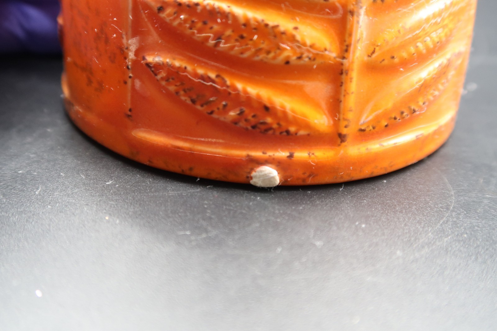 Vtg INARCO Small Orange Mid-Century Planter Japan Textured Leaf Fern Pattern