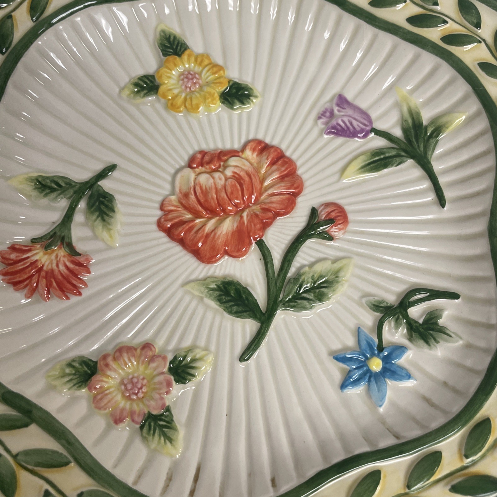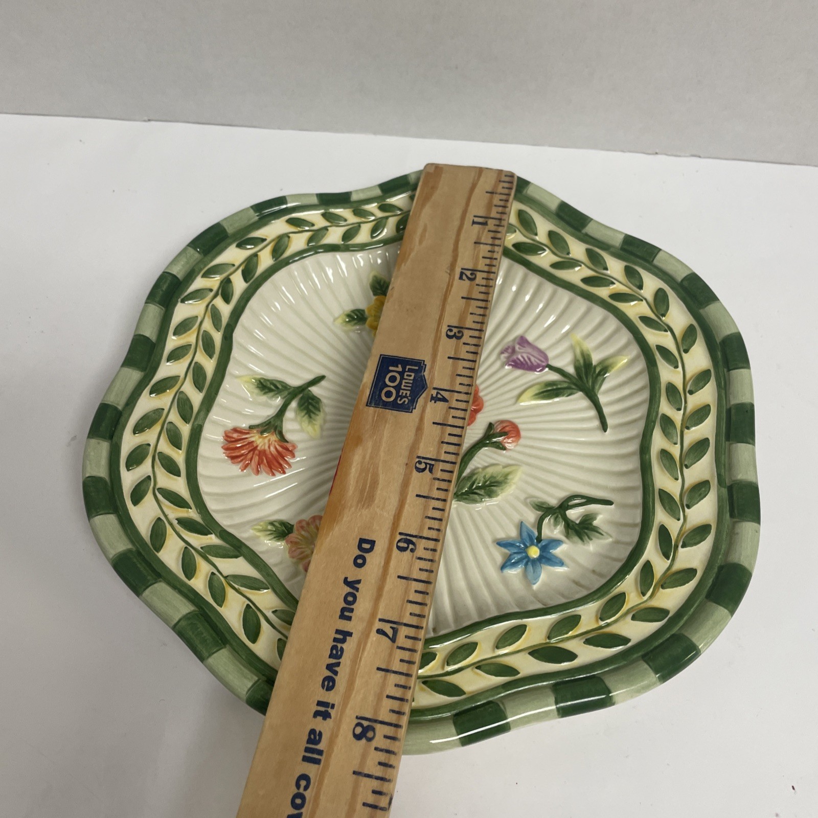 Fitz And Floyd Classics Decorative Wall Hanging 3d Floral Plate Green Stripes