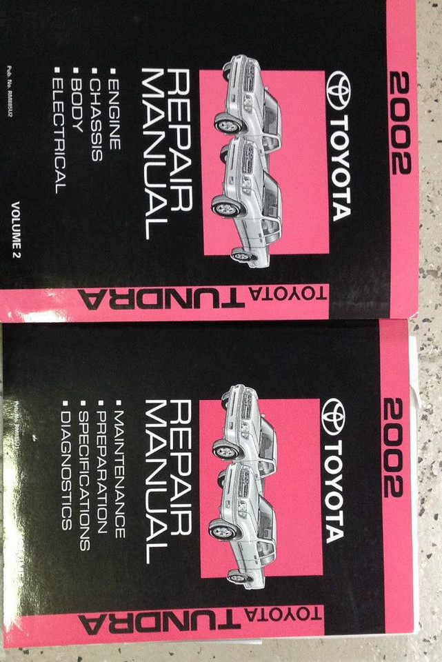 BRAND NEW FACTORY AUTHORIZED REPRINT 2002 Toyota TUNDRA Factory Service Manual 2 Volume Set ELECTRICAL WIRING MANUAL Full of information and illustrations, exploded illustrations/diagrams, step by step instructions, great manual to have when owning this truck We will leave POSITIVE Feedback after we receive your payment. Please do not forget to give us POSITIVE Feedback and FIVE Stars on all of the Detailed Seller Ratings! If you are not satisfied with your shopping Experience, please contact us to get a solution before you decide to leave a NEUTRAL or a NEGATIVE Feedback, We will do our best to solve any problems for you as soon as possible. We will provide you with the BEST POSSIBLE service because the POSITIVE Feedback and FIVE Stars are what we are striving for. Please email me thro