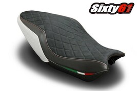 Maximize the style of your Ducati Monster 821 and 1200 with a Luimoto Diamond Edition seat cover. Featuring a luxurious synthetic suede top panel stitched in our famous Diamond pattern, leather look, carbon fiber textured fabrics and contrast stitching. All of this combined with Italian flags complete the look of your fine machine. Stand out with the finishing touch of Luimoto.